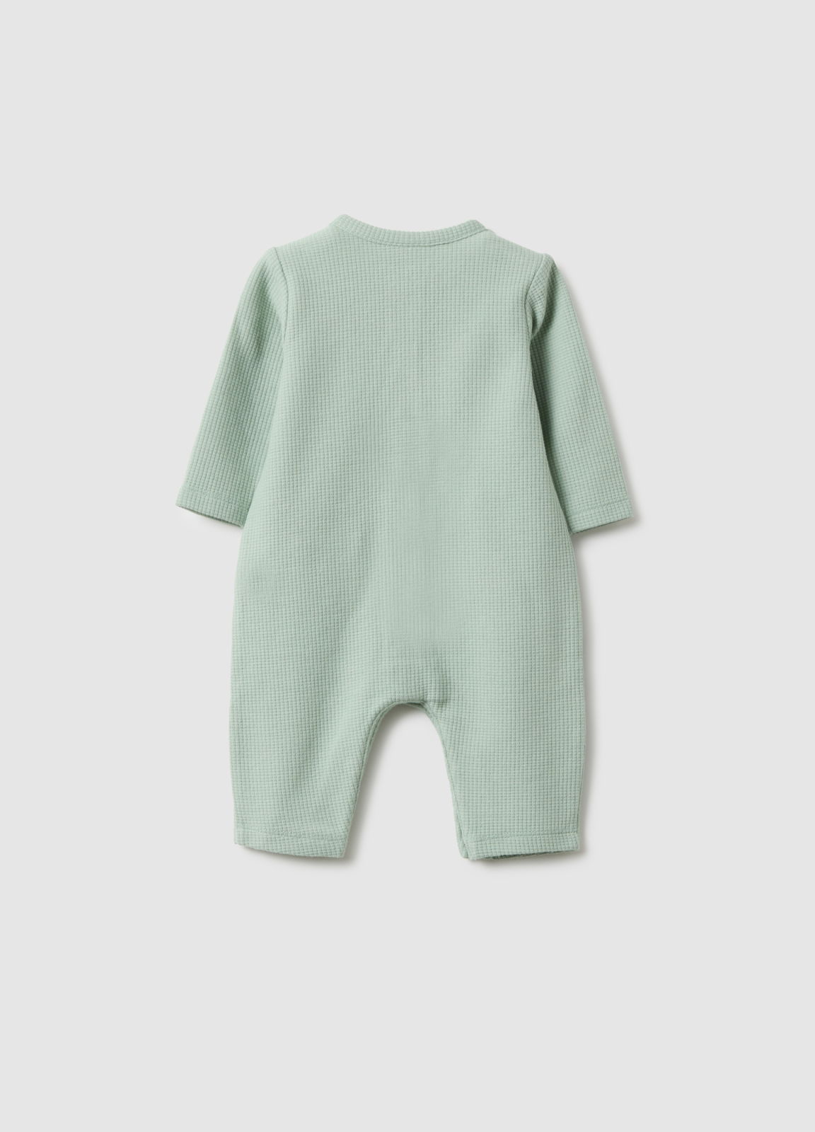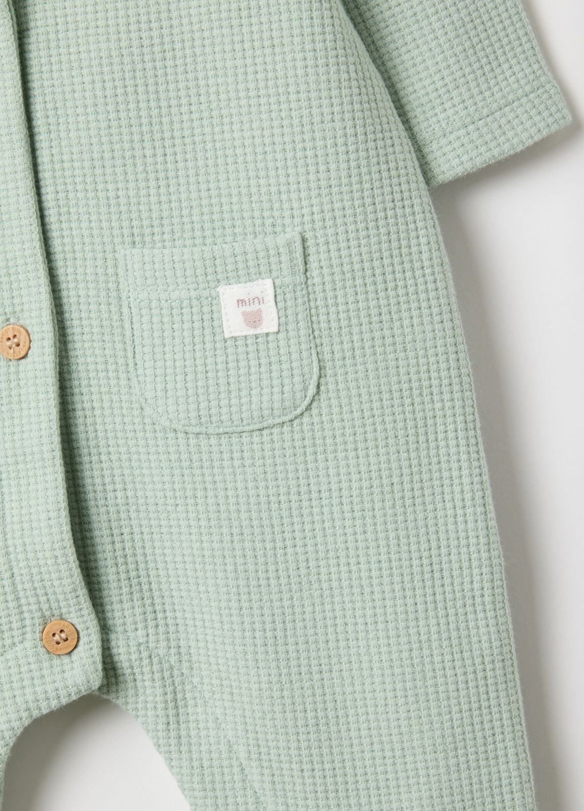 Tip Produs: Salopetă pentru bebeluși din bumbac pur verde, cu nasturi
