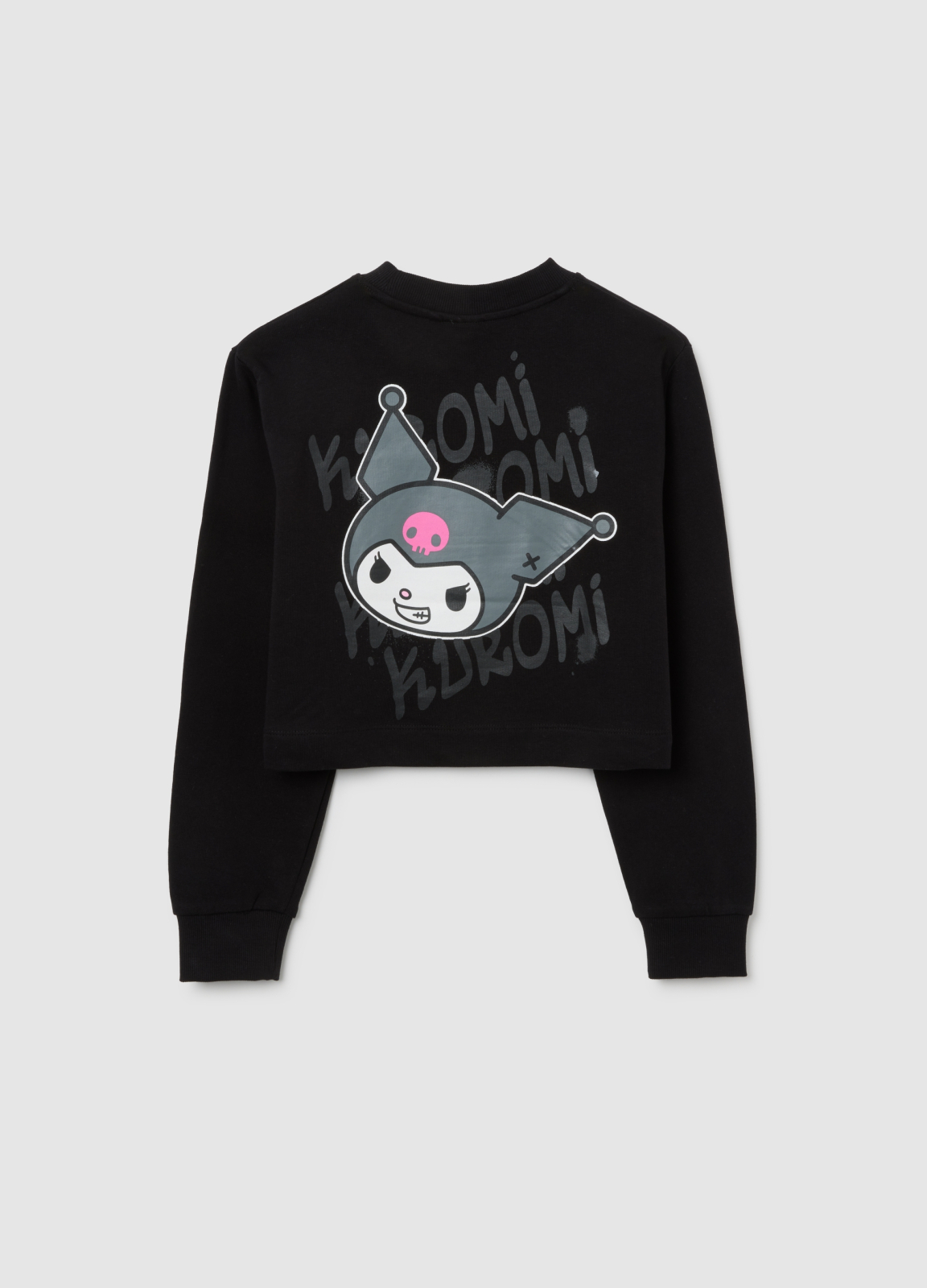 Tip Produs: Hanorac negru pentru fete din bumbac, regular fit, cu guler rotund