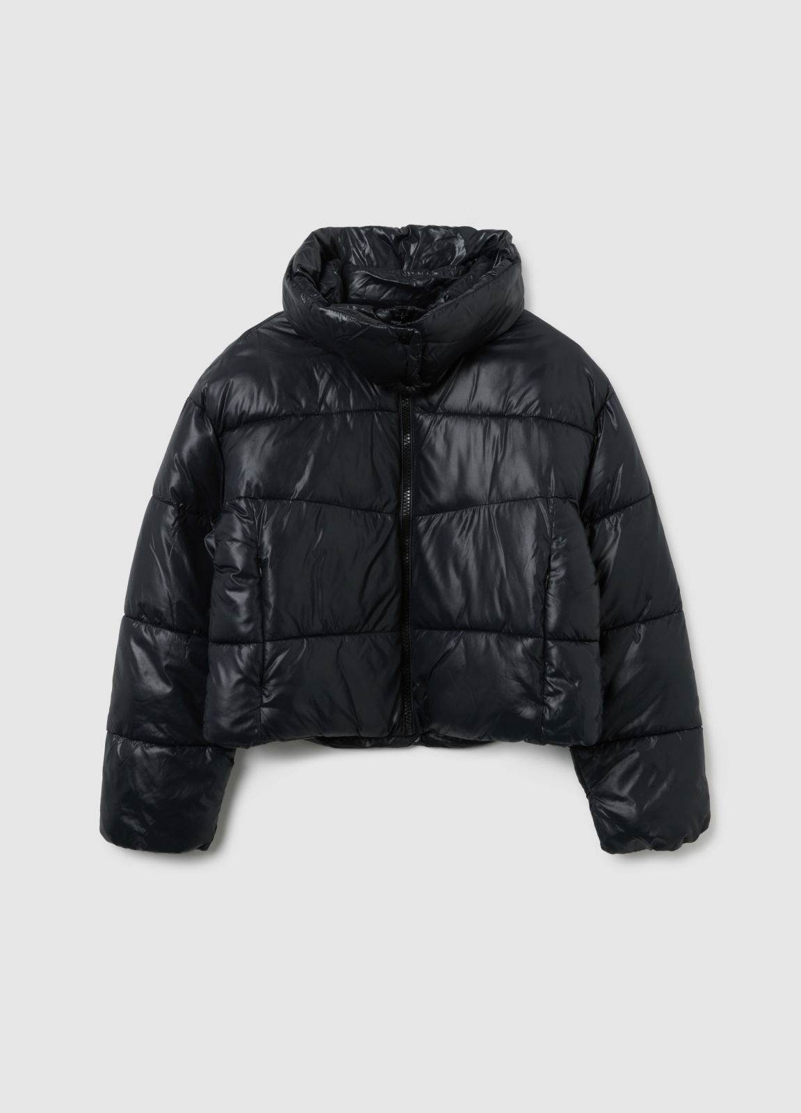Tip Produs: Geacă matlasată neagră pentru fete, croială lejeră, cu fermoar