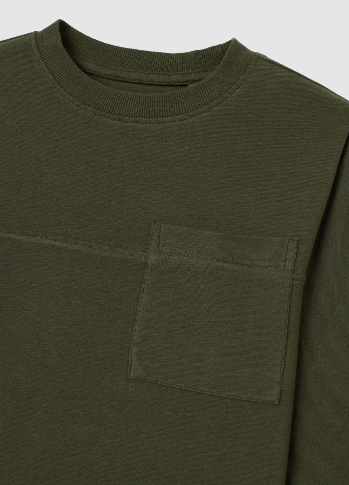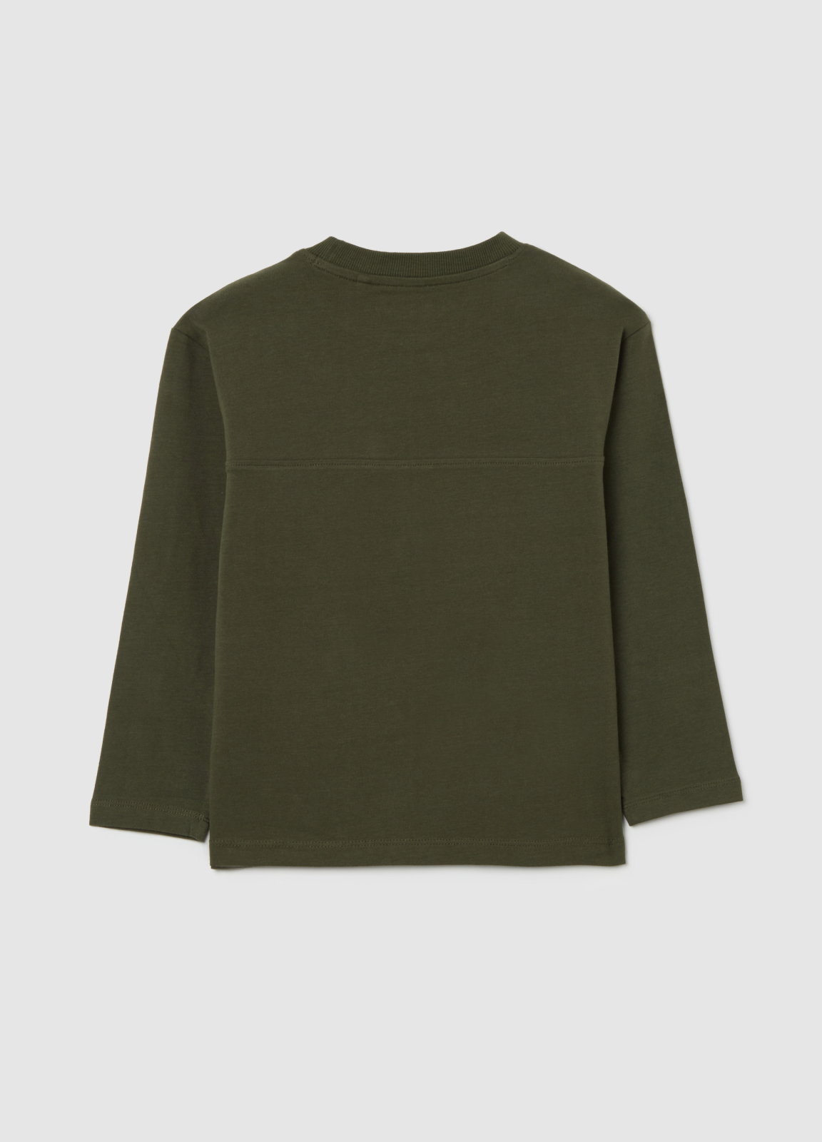 Caracteristici: Acest pulover verde cu mâneci lungi din linia OVS KIDS este destinat copiilor între 3 şi 10 ani. Realizat din bumbac elastic, oferă confort ideal pentru activităţile zilnice. Prezintă croială regular, decolteu rotund şi buzunar practic pe piept pentru utilizare versatilă. Potrivit pentru sezonul toamnă/iarnă, asigură căldură şi fineţe.