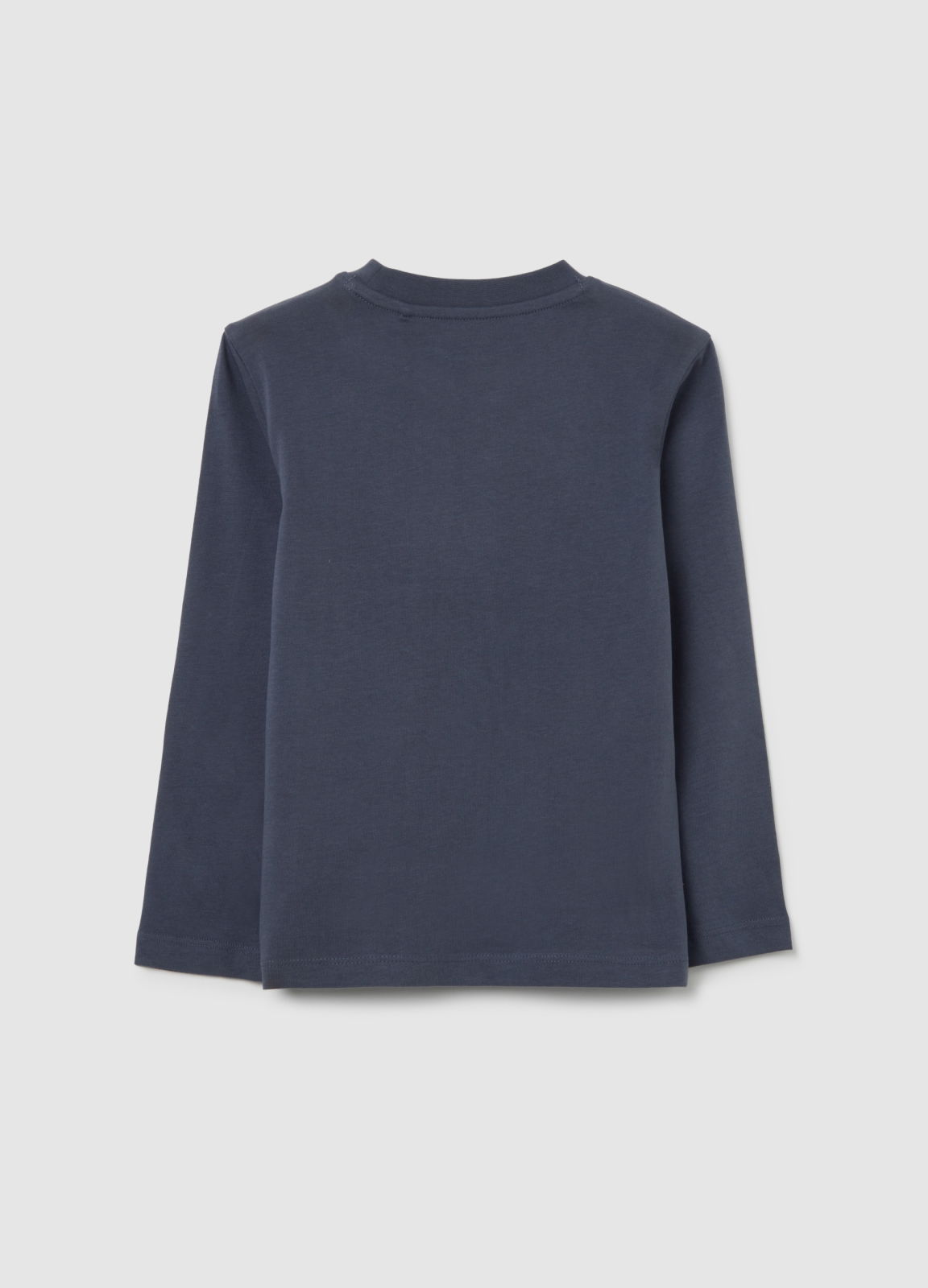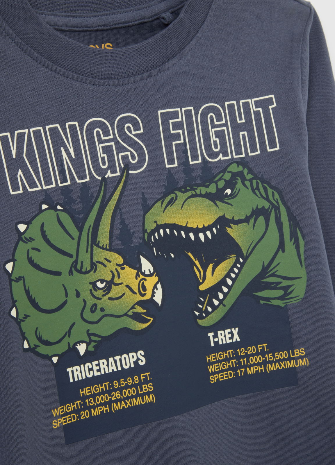 Caracteristici: Tricou albastru cu mânecă lungă, bumbac 100%, cu imprimeu dinozaur, talie regular, pentru vârsta 3-10 ani.