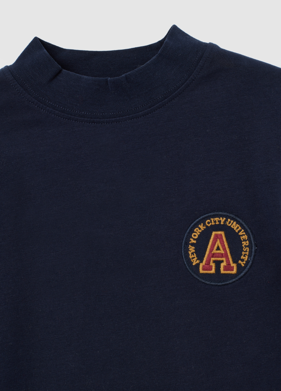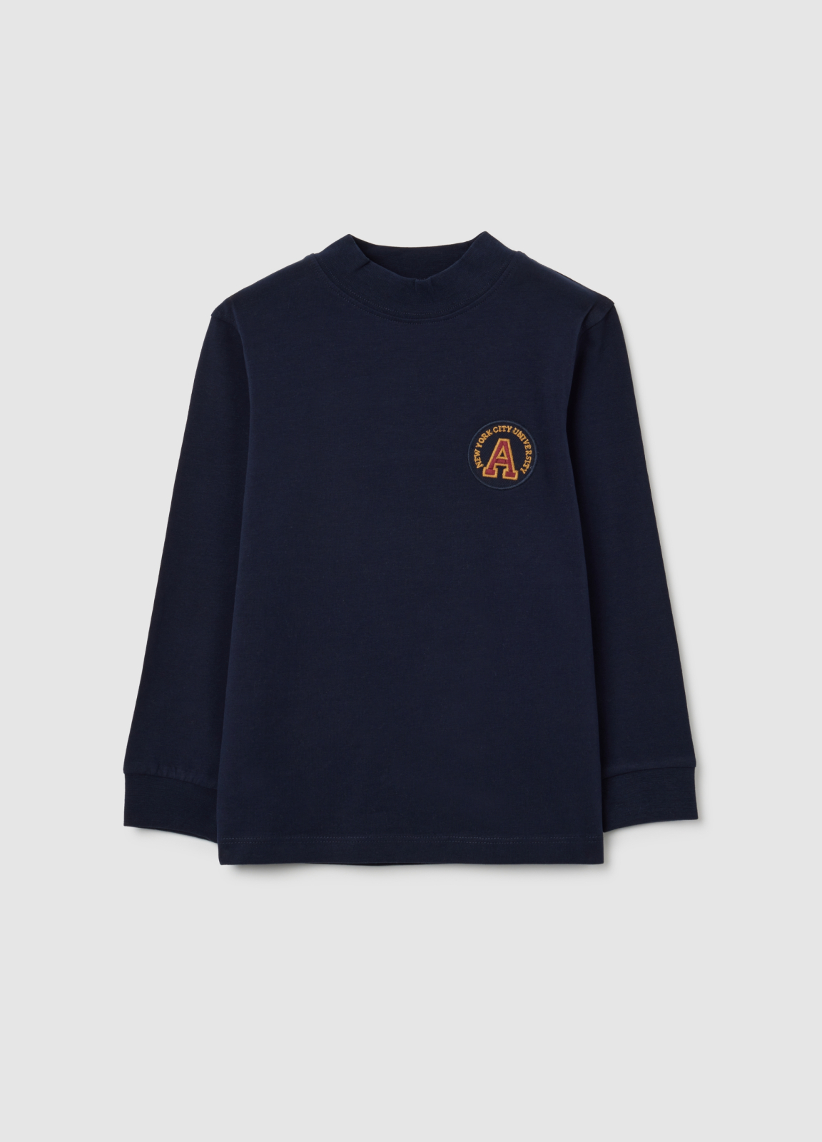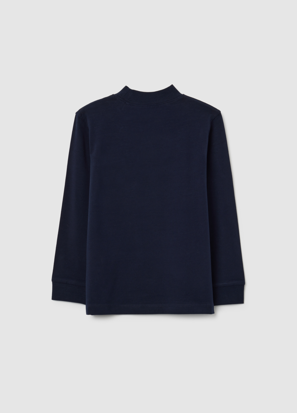 Caracteristici: Bluza cu mânecă lungă din bumbac elastic albastru, din linia OVS KIDS, destinată copiilor între 3 și 10 ani, oferă o croială regular fit și confort optim pentru zilele mai răcoroase. Gulerul rotund și imprimeul de pe piept adaugă o notă casual potrivită pentru orice ocazie.