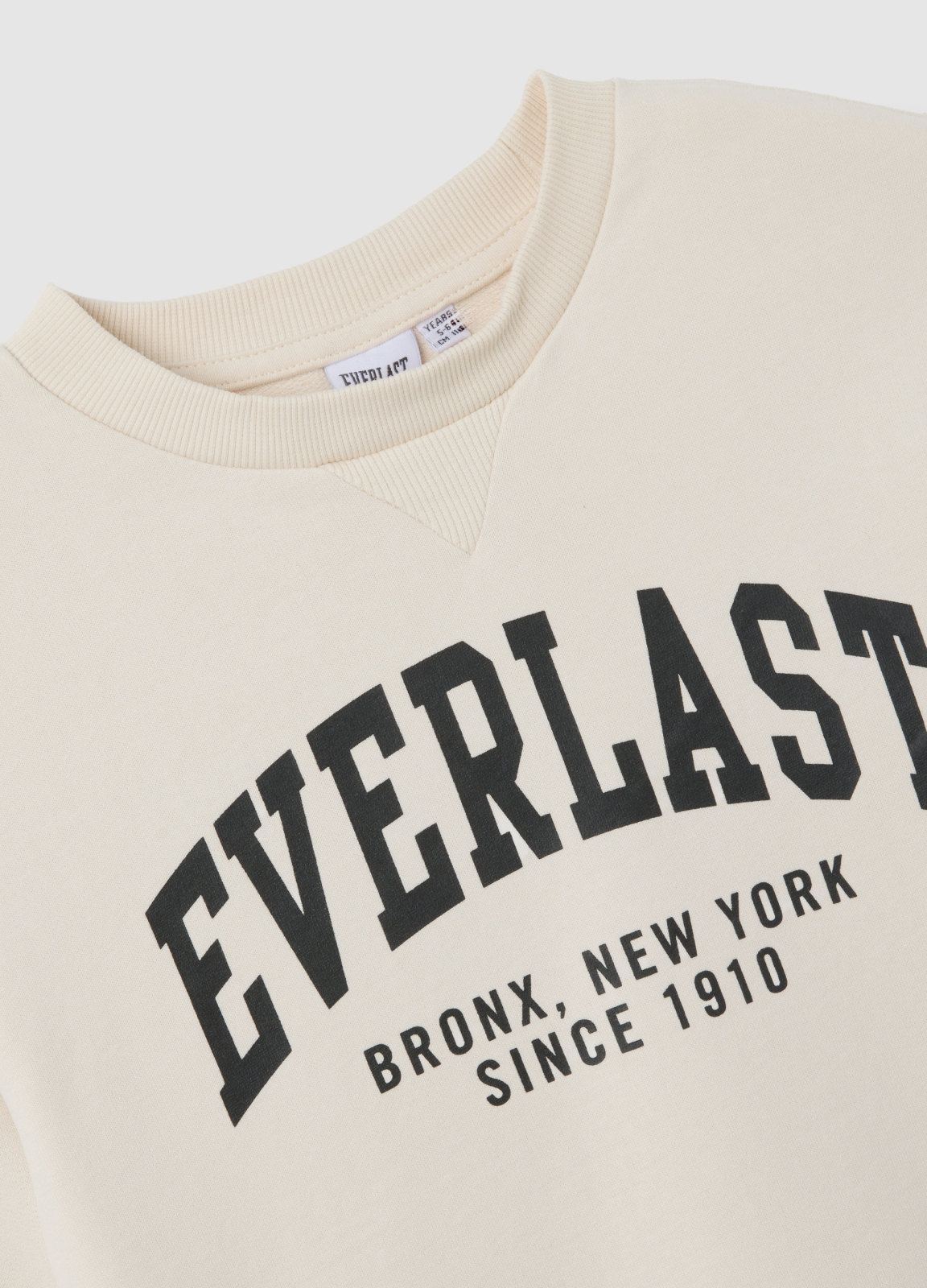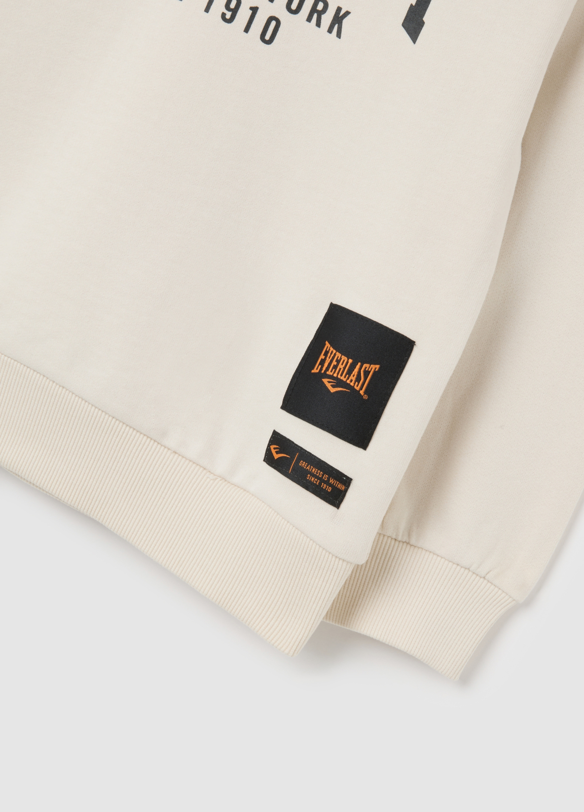 Caracteristici: Hanoracul bej cu guler rotund Everlast pentru copii 3–10 ani este realizat din bumbac 100%. Are croială oversize și imprimeuri grafice pe față. O piesă practică și versatilă, ideală pentru toamnă și iarnă, ușor de asortat la diverse ținute casual.