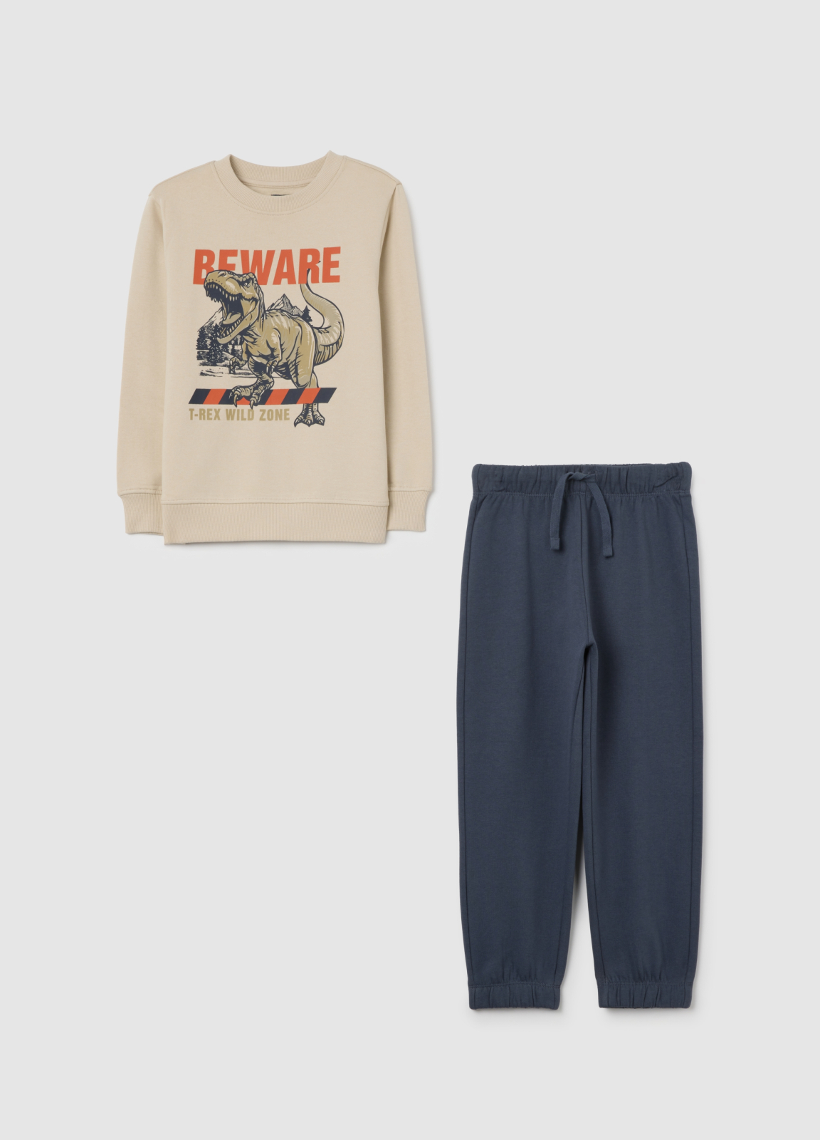 Caracteristici: Acest set de trening din linia OVS KIDS este ideal pentru aventurile de toamnă şi iarnă, pentru copii între 3 şi 10 ani. Confecţionat din bumbac pur, asigură fineţe superioară şi confort. Pachetul include un hanorac bej cu imprimeu de dinozaur şi pantaloni albaștri cu talie elastică, oferind o croială regular perfectă pentru joacă şi relaxare.
