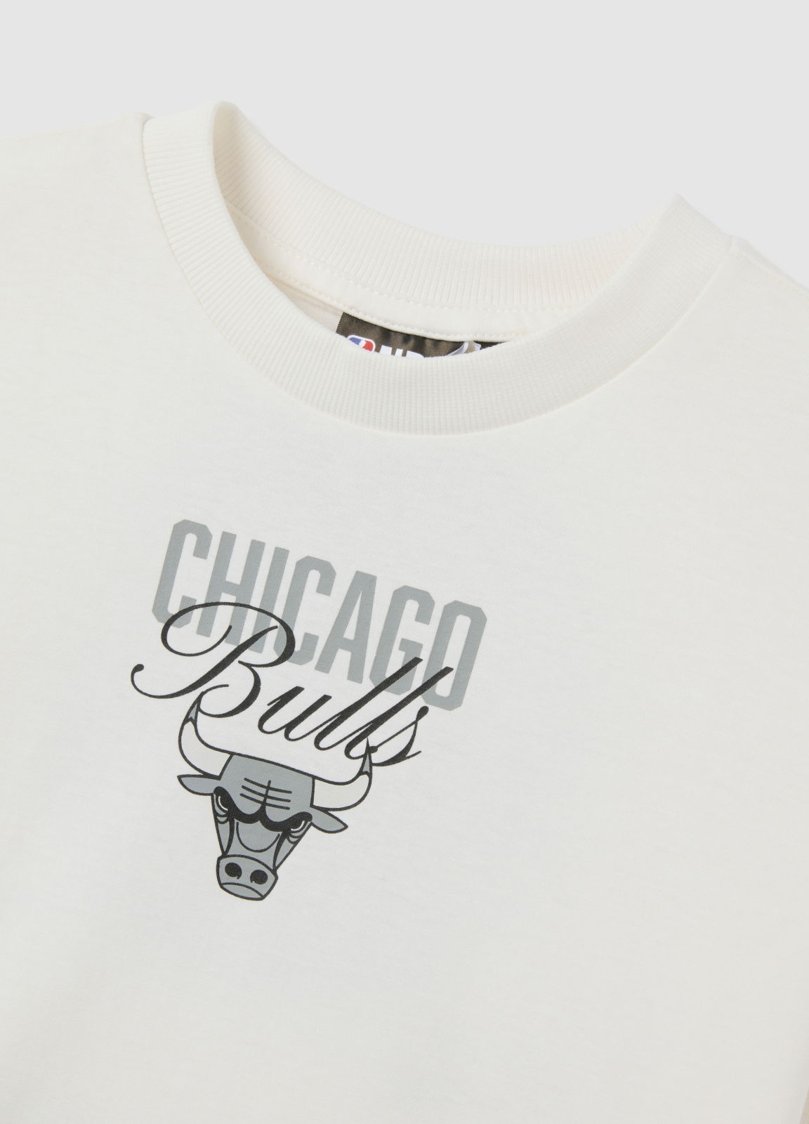 Tip Produs: Tricou alb oversize pentru copii, din bumbac 100%, cu logo Chicago Bulls