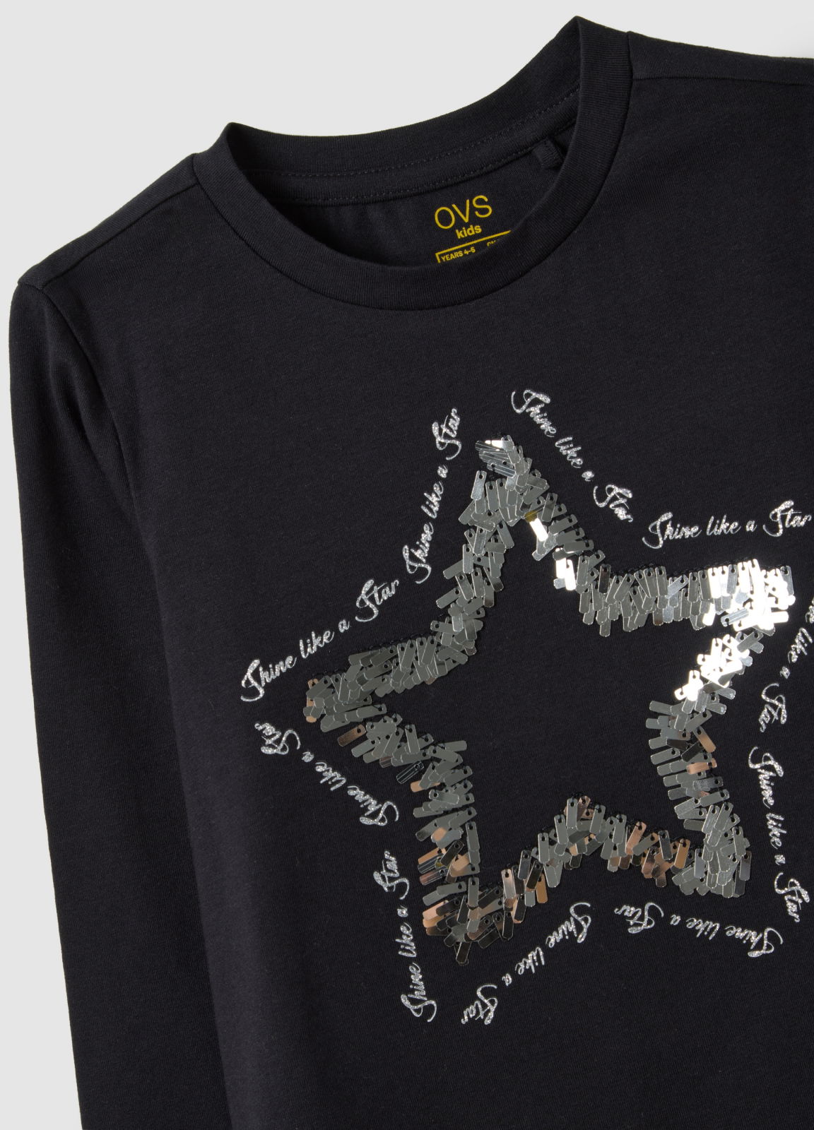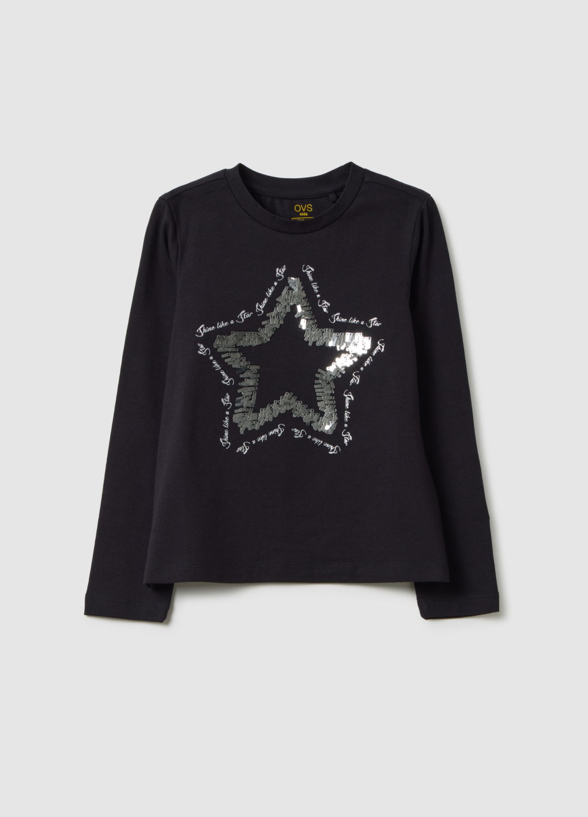 Caracteristici: Această bluză cu mânecă lungă pentru fete cu vârste între 3 și 10 ani, din bumbac elastic negru, din linia OVS Kids, este perfectă pentru sezonul toamnă și iarnă. Designul modern este accentuat de o stea strălucitoare pe partea frontală, în timp ce materialul moale asigură confort și libertate de mișcare.