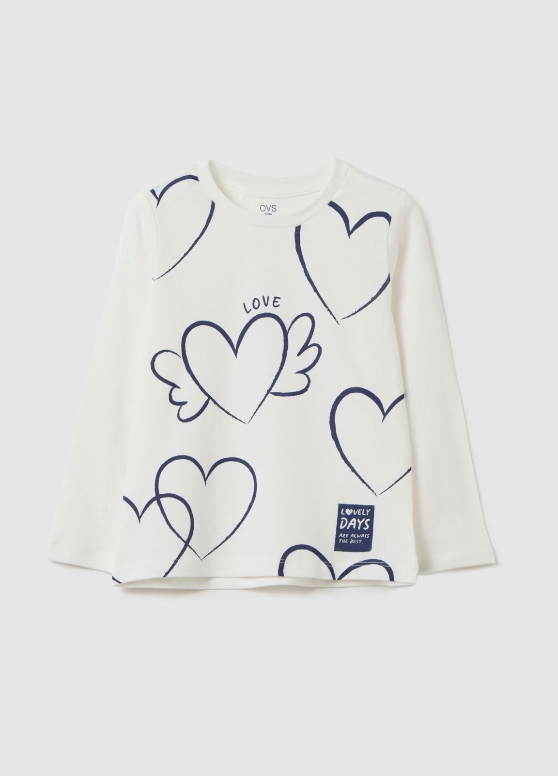Tip Produs: Bluză albă pentru fete, din bumbac 100%, croială regular fit, cu inimioare