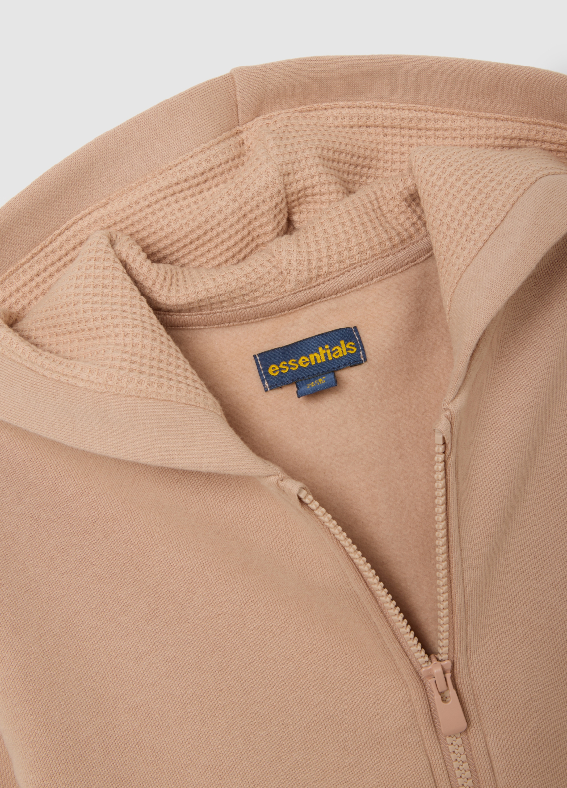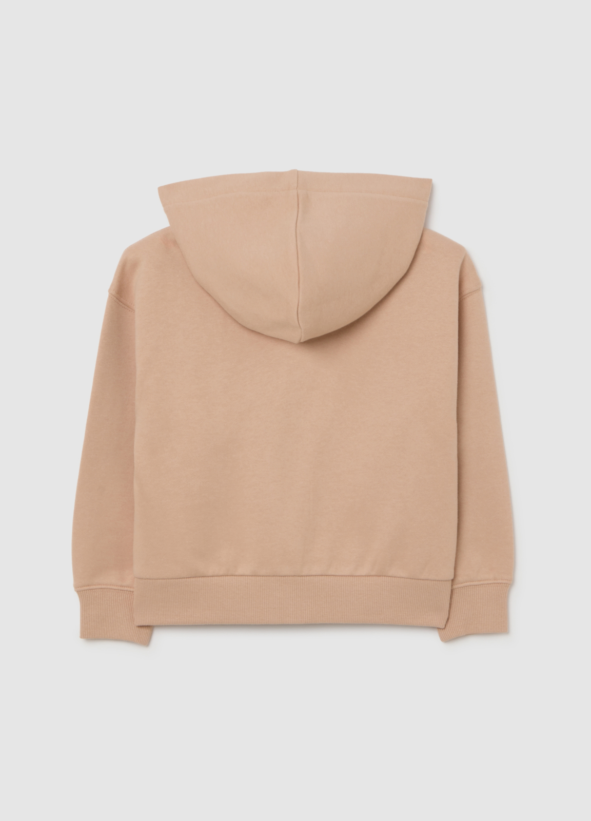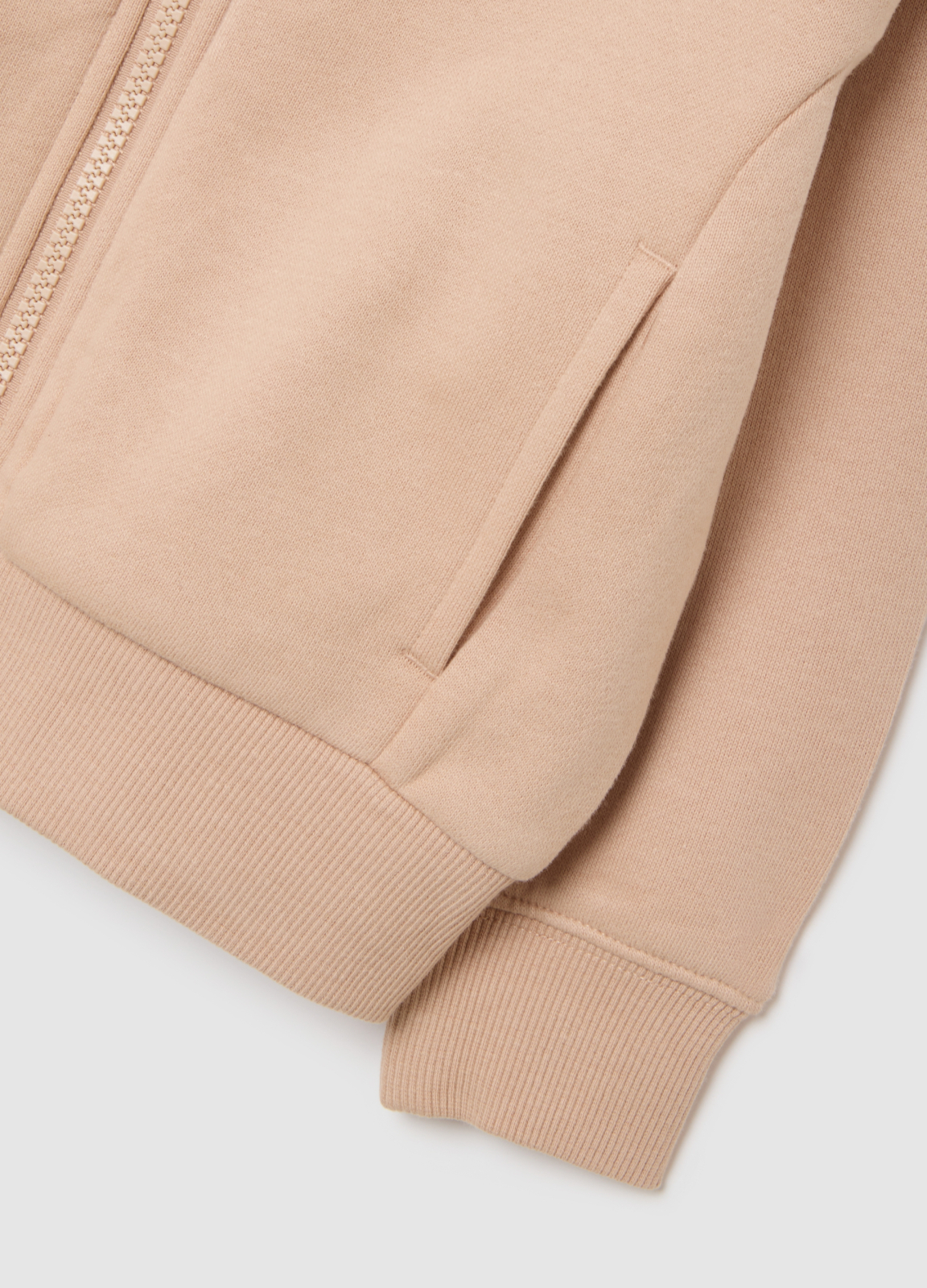 Tip Produs: Hanorac bej pentru fete, din bumbac 100%, croială regular, cu glugă și fermoar