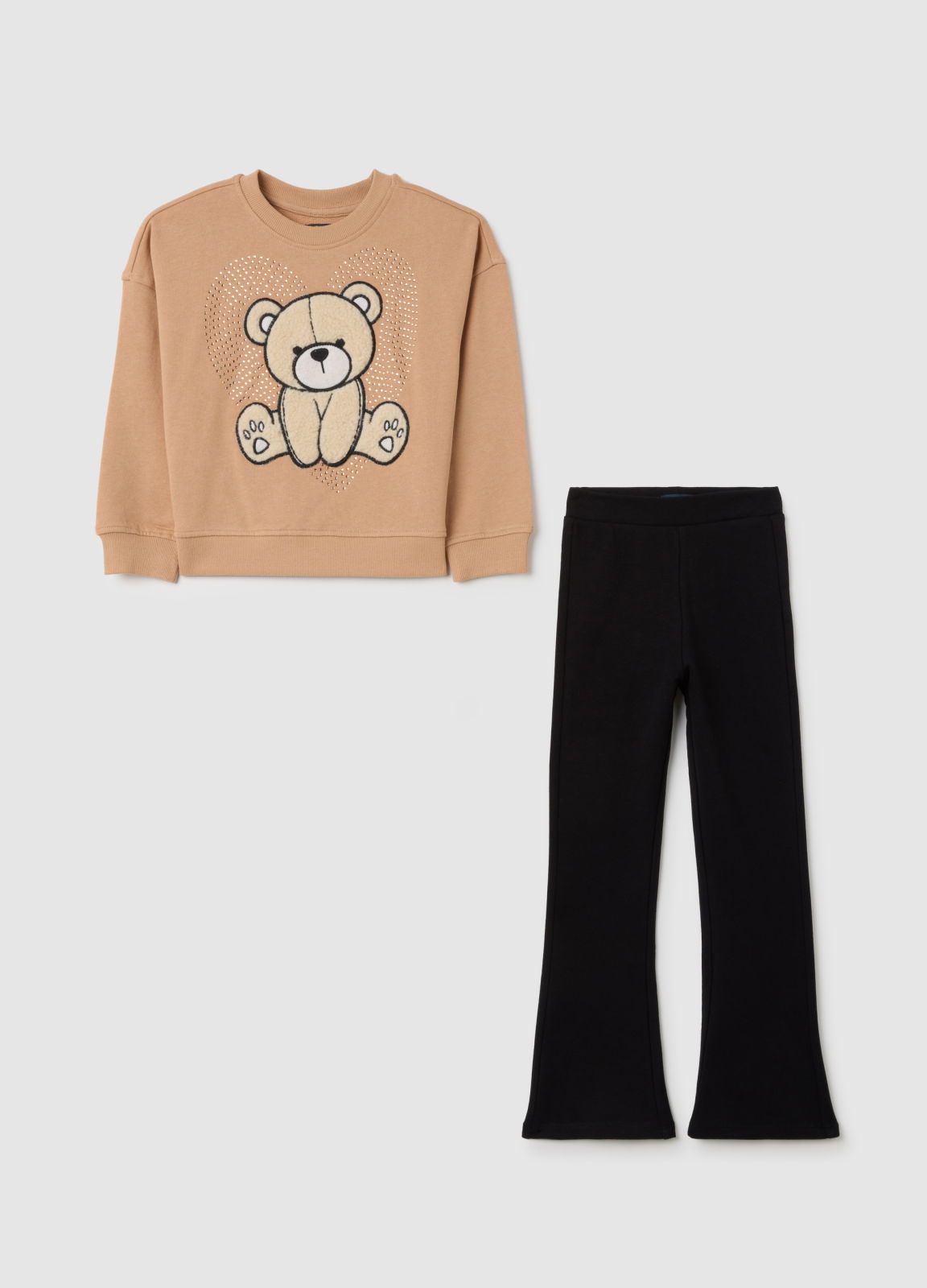 Caracteristici: Setul pentru fete din linia OVS KIDS este perfect pentru copii între 3 și 10 ani. Include pantaloni negri și pulover bej cu imprimeu adorabil ursuleț, realizat din bumbac 100% pentru confort pe tot parcursul zilei. Puloverul are guler rotund și mâneci lungi, iar pantalonii cu talie elastică oferă purtare practică și comodă, ideal pentru toamnă și iarnă.