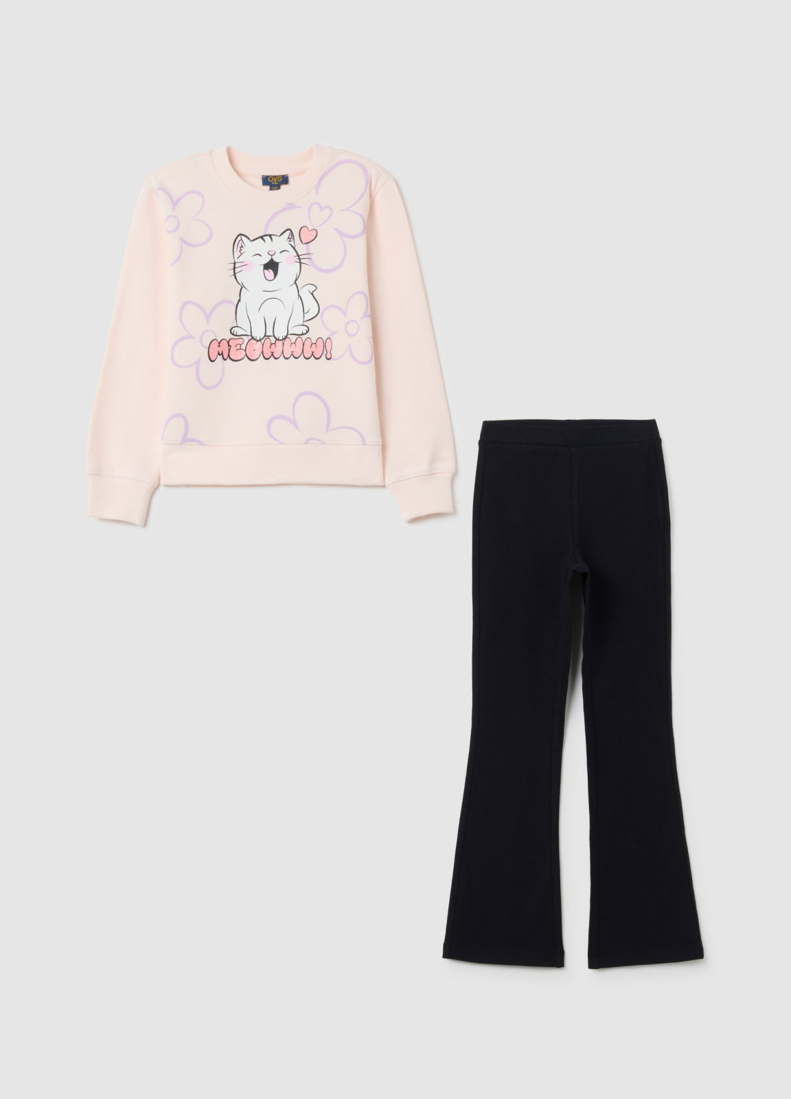 Caracteristici: Acest set din linia OVS Kids este destinat fetelor cu vârsta între 3 și 10 ani. Conținând un top roz din bumbac și pantaloni negri evazați, este perfect pentru confort și joacă în zilele mai răcoroase. Designul include un print drăguț cu pisici, ideal pentru cei care iubesc îmbrăcămintea jucăușă și confortabilă. Potrivirea relaxată asigură libertatea de mișcare pe parcursul activităților zilnice.