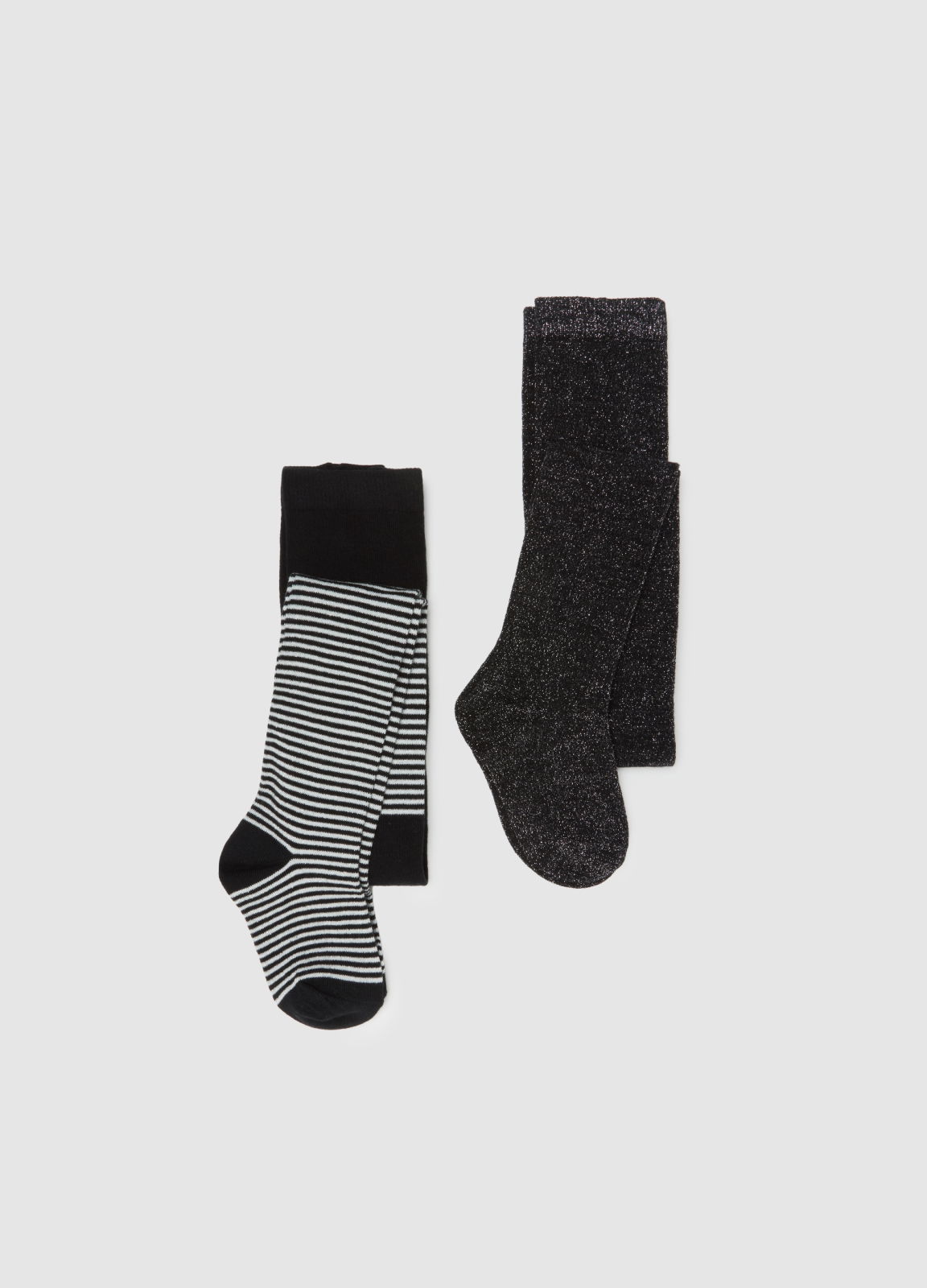 Tip Produs: Set de două perechi de șosete lungi, în dungi și cu sclipici
