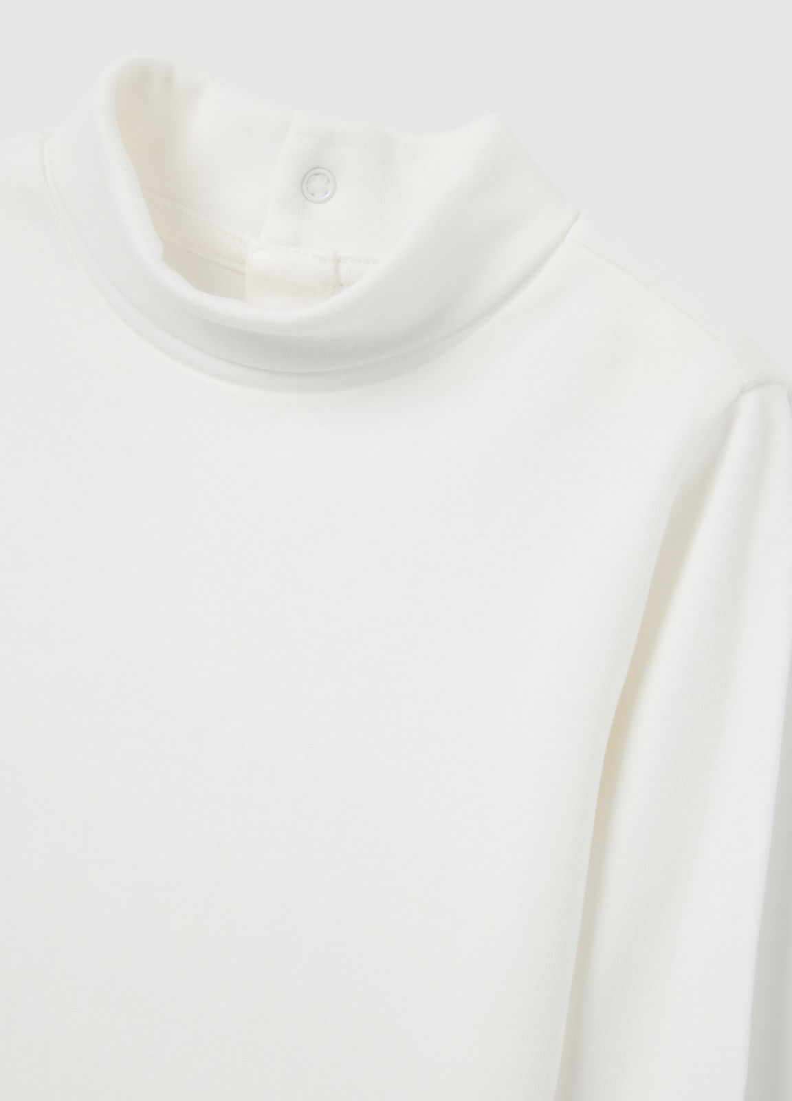 Tip Produs: Tricou alb pentru bebeluși, cu guler înalt, din bumbac 100%, croială lejeră