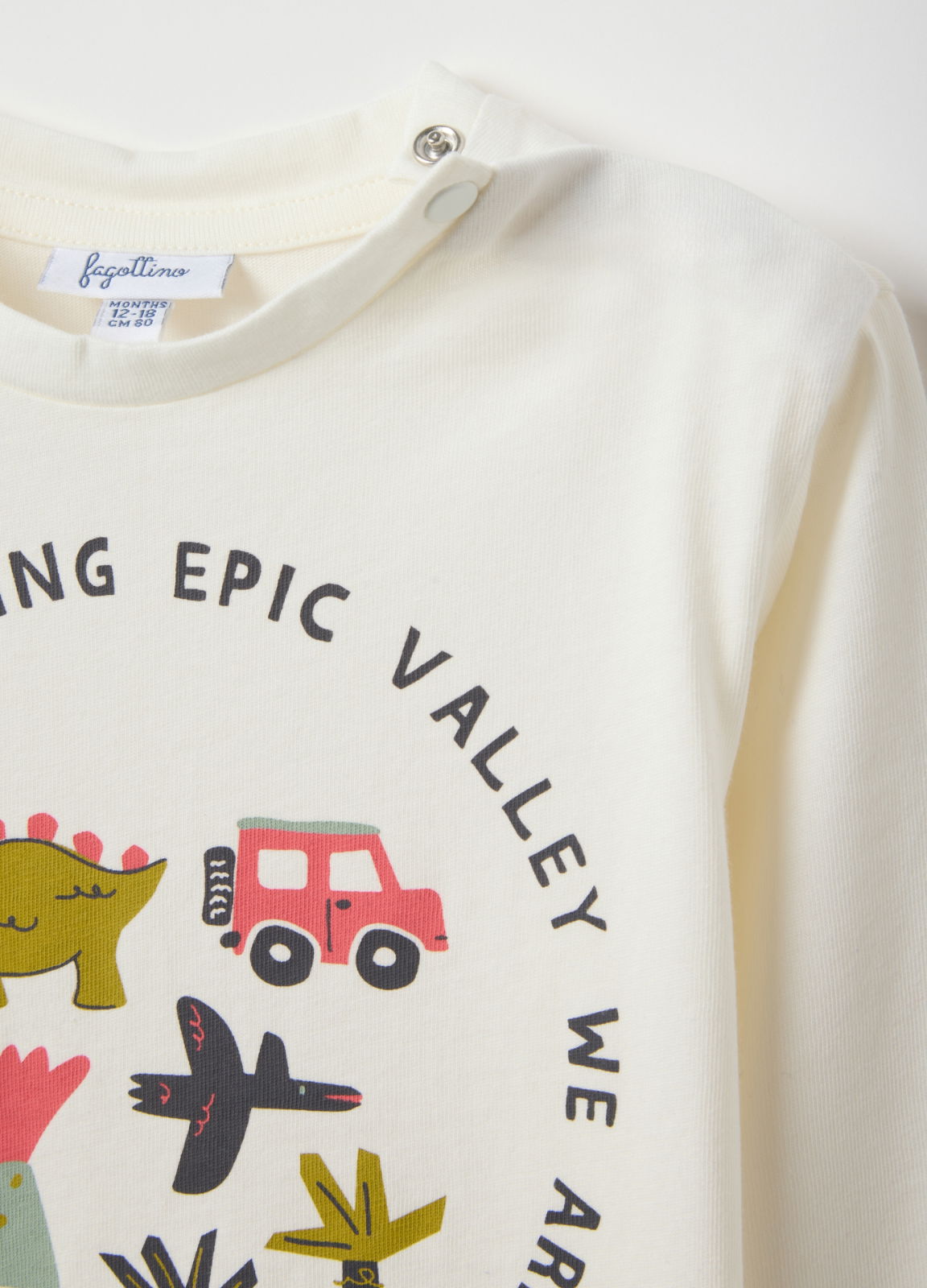 Caracteristici: Acest tricou alb cu mâneci lungi pentru copii cu vârste între 9 și 36 de luni, din linia Fagottino, este realizat din bumbac pur. Designul este îmbogățit cu detalii imprimate, fiind perfect pentru un look proaspăt și dinamic în sezoanele de primăvară și vară. Decolteul rotund asigură confort în timpul jocului, iar închiderea cu capse pe umăr oferă ușurință la îmbrăcare.