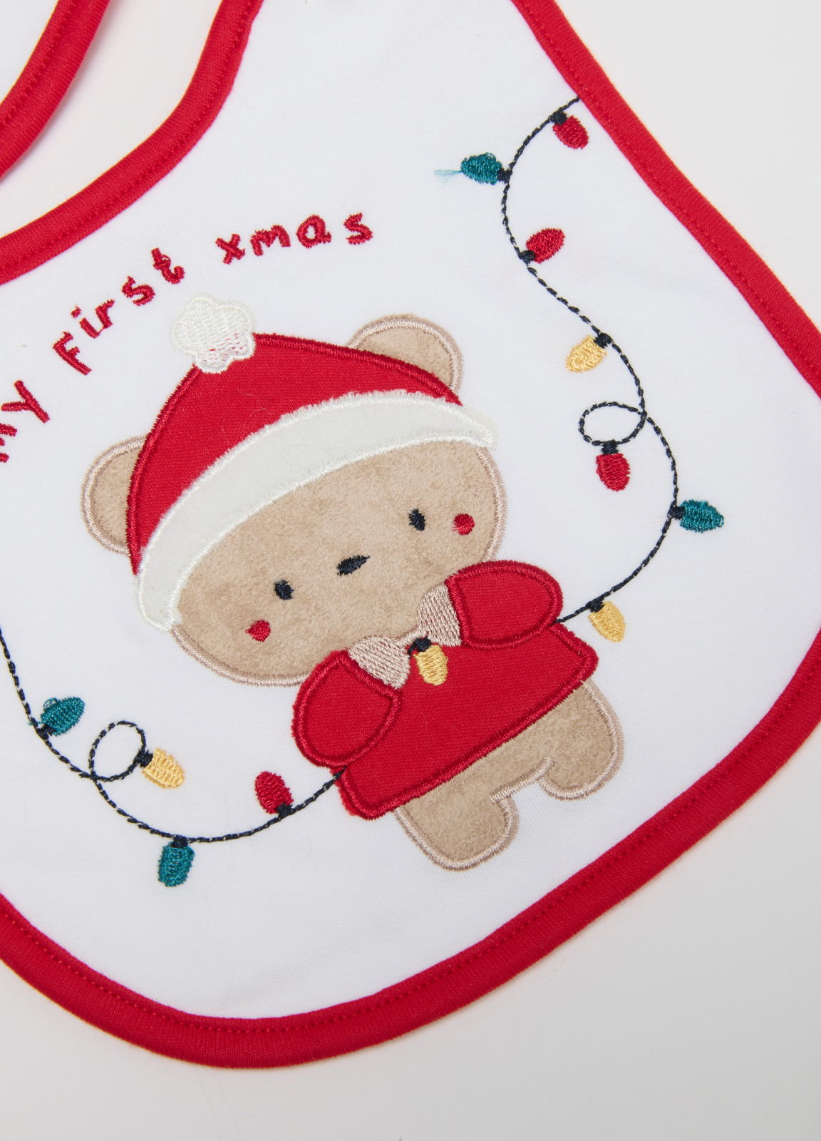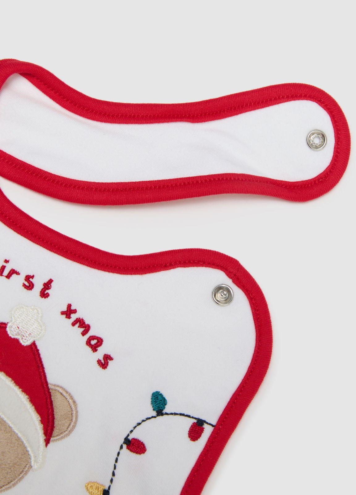 Caracteristici: Baveta pentru nou-născuți din linia Fagottino are un design multicolor cu un ursuleț de Crăciun brodat. Capsele asigură îmbrăcarea rapidă și ușoară.