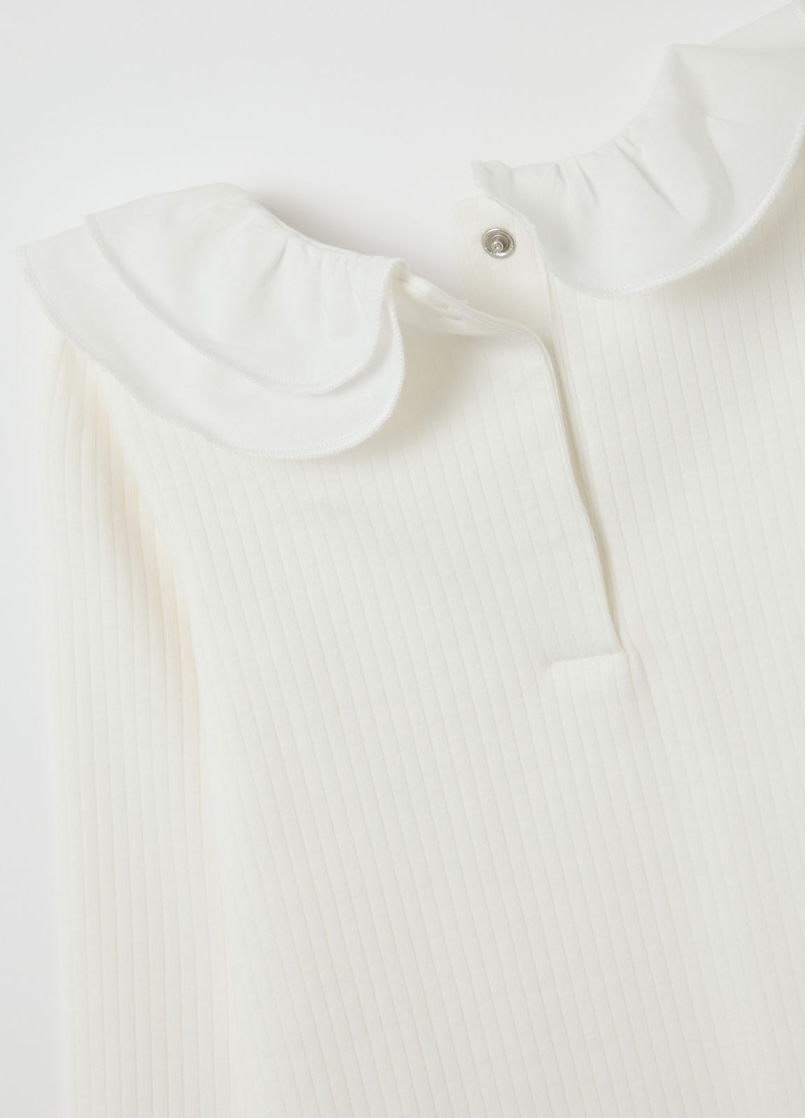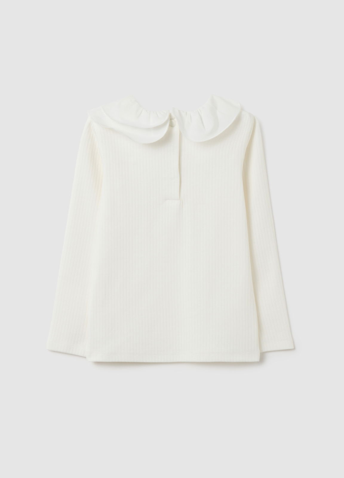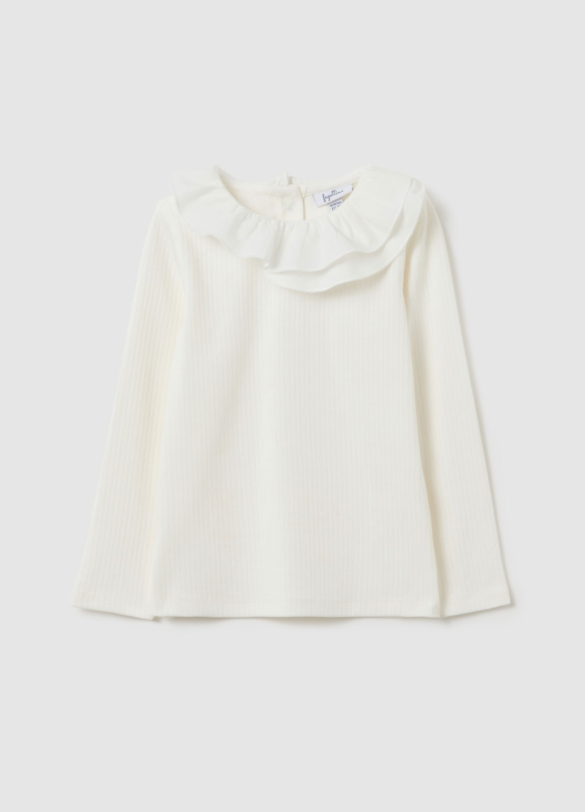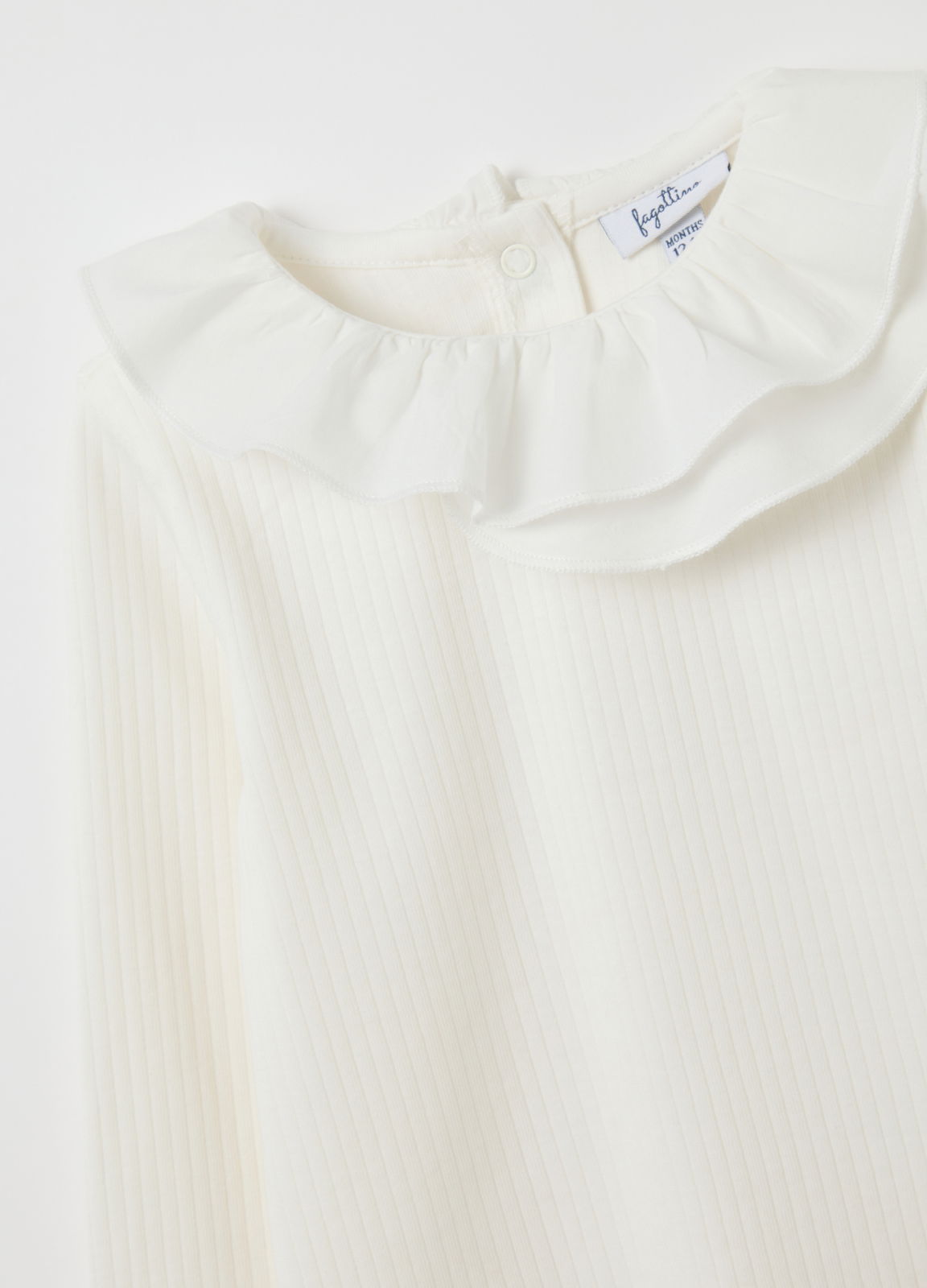 Caracteristici: Acest tricou alb cu dungi pentru fete între 9 și 36 luni, din linia Fagottino, este realizat din bumbac elastic. Designul cu guler și închidere la spate îl face practic și potrivit pentru toamnă și iarnă.