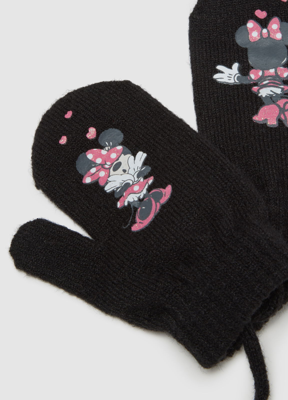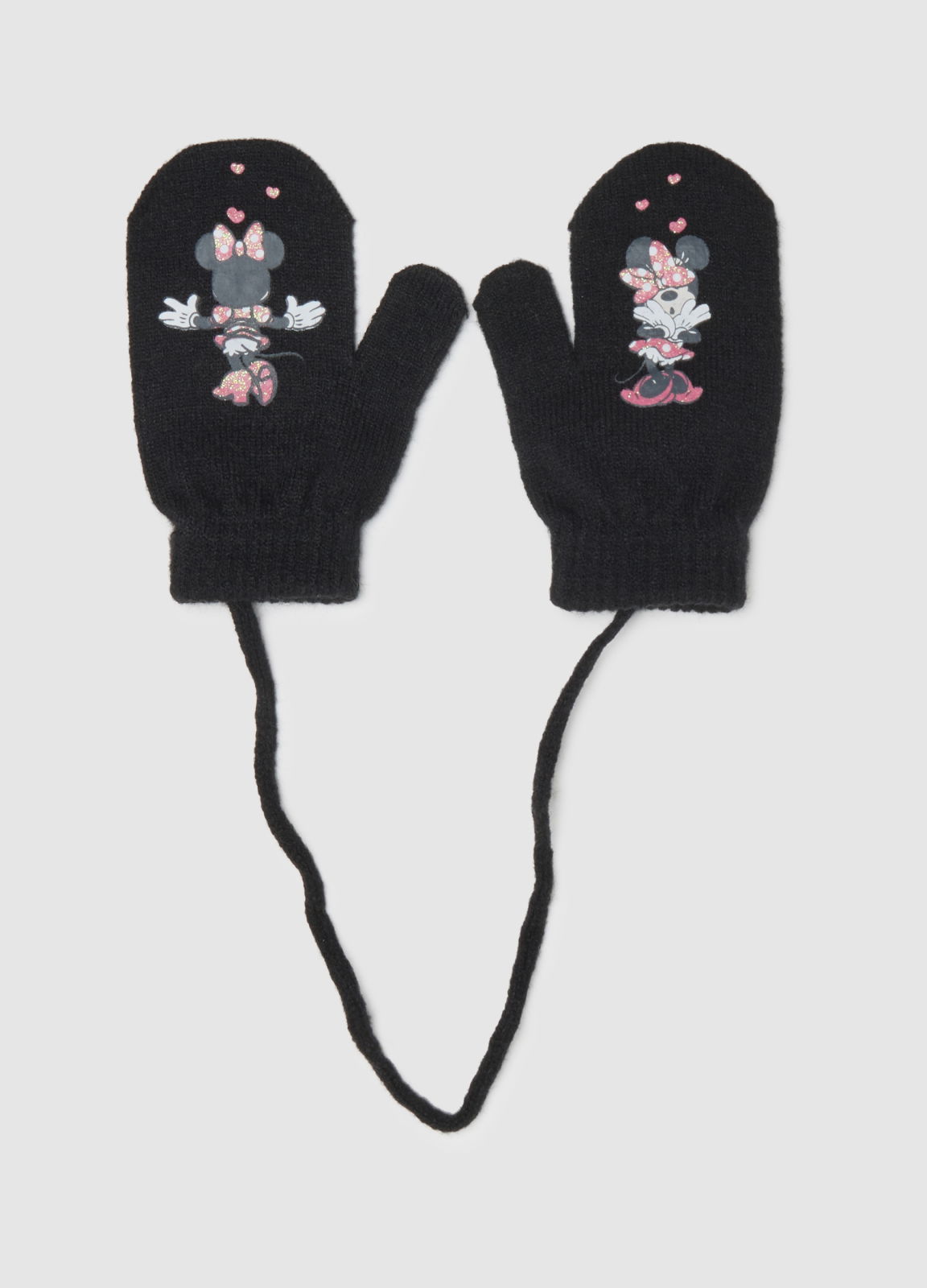 Tip Produs: Mănuși negre pentru copii mici, cu șnur și imprimeu Minnie