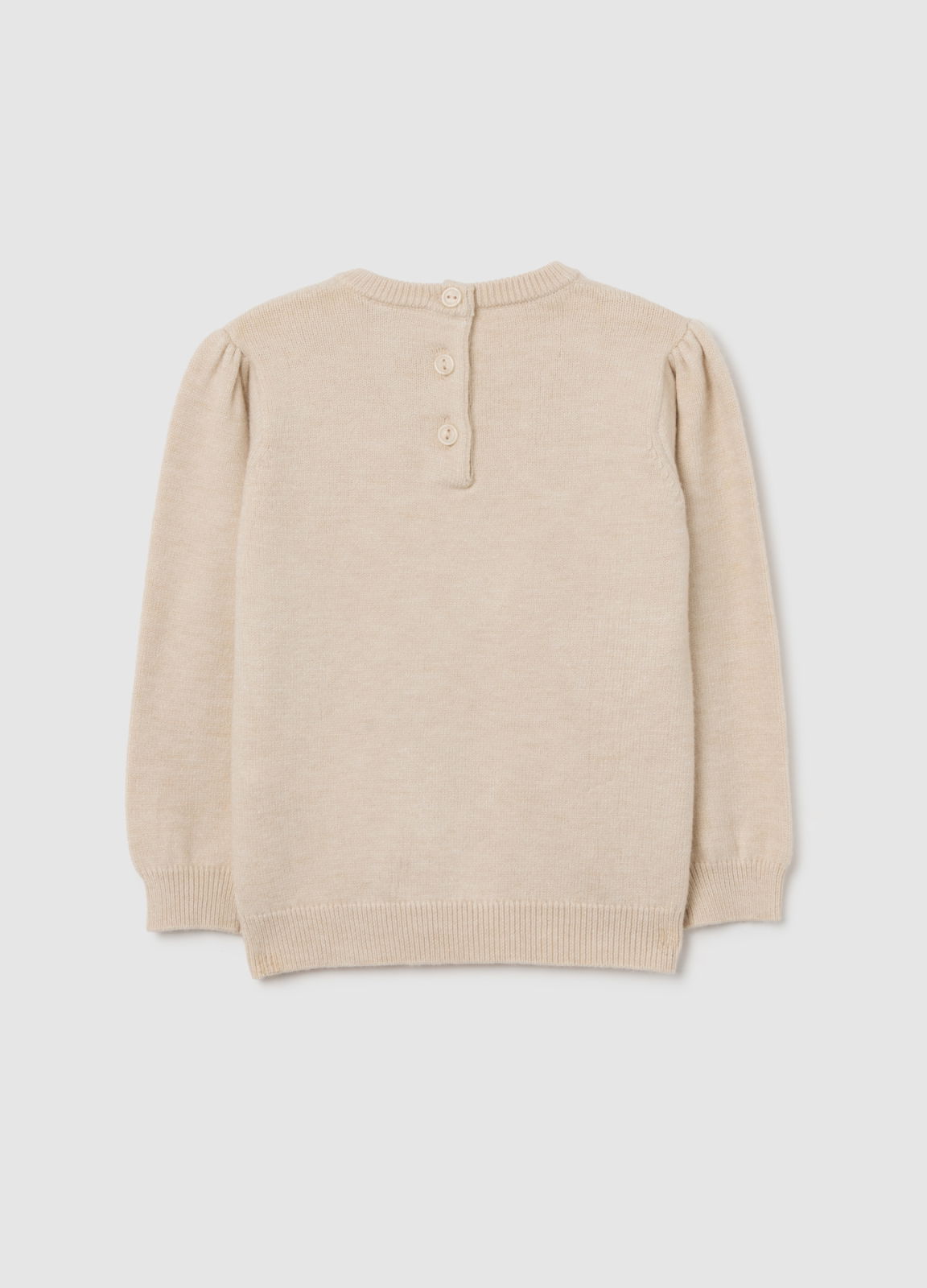 Caracteristici: Pulover bej pentru fete, realizat dintr-un amestec de viscoză, poliester și poliamidă. Decorat cu inimioare tricotate jacquard, oferă confort și finețe datorită texturii moi. Gulerul rotund și închiderea cu nasture la spate facilitează îmbrăcarea. Ideal pentru a-ți menține micuța caldă în lunile reci, potrivit pentru fete între 9 și 36 de luni.