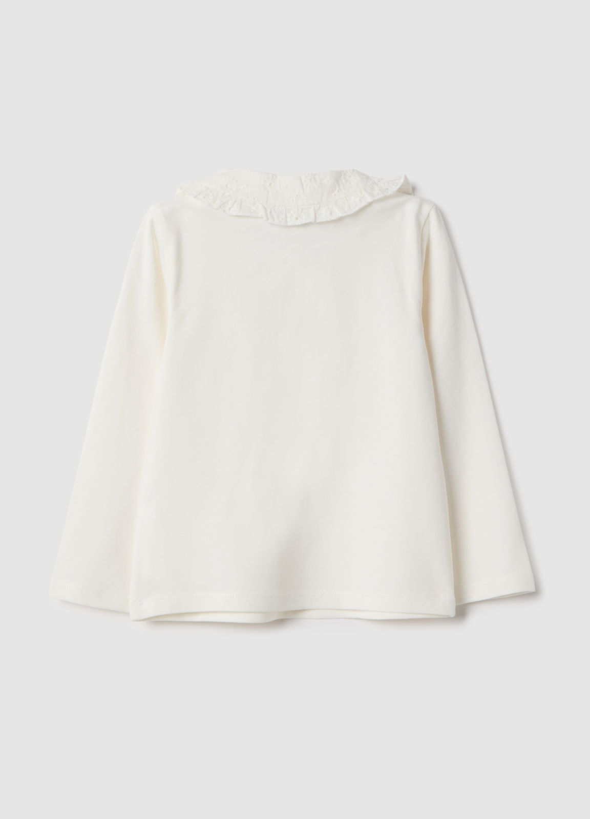 Tip Produs: Polo alb fete, croială regular, amestec de bumbac cu guler din dantelă