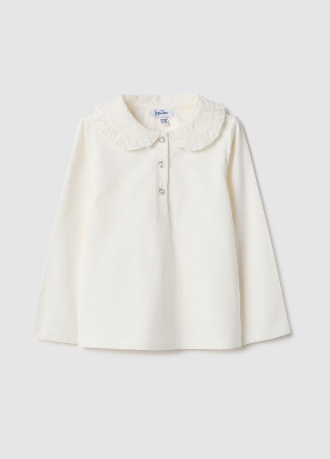 Caracteristici: Polo alb cu mâneci lungi din linia Fagottino este realizat din bumbac elastic, asigurând confort și libertate de mișcare. Gulerul din dantelă adaugă un plus de originalitate, iar nasturii frontali facilitează îmbrăcarea. Perfect pentru toate sezoanele, garantează moliciune pe piele și se potrivește cu multe ținute.