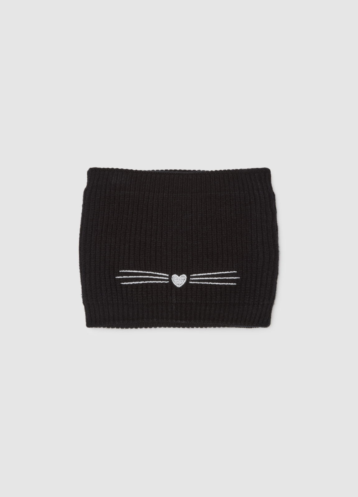 Tip Produs: Fular negru pentru fete, cu broderie pisicuță
