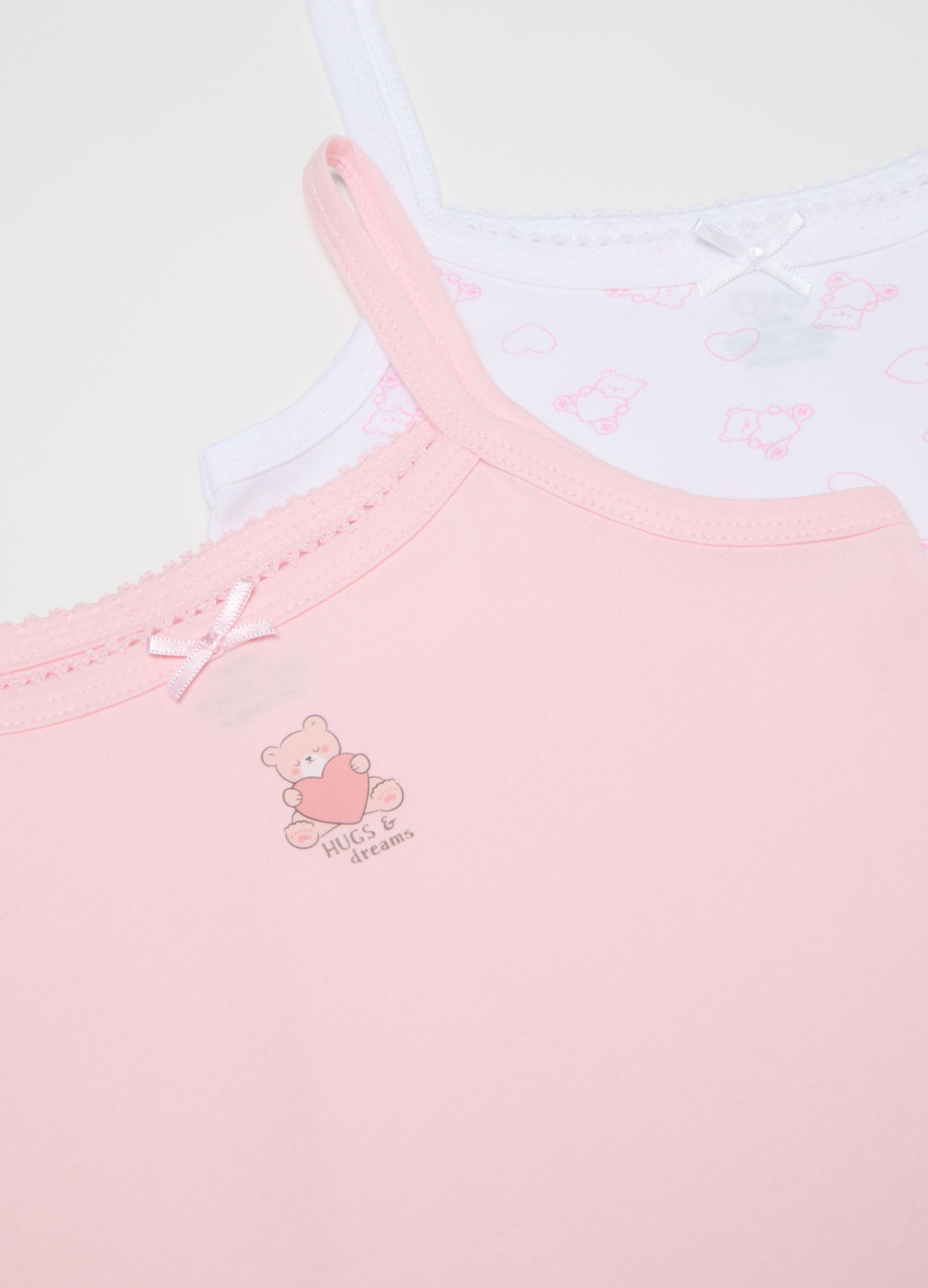 Caracteristici: Acest set de două maiouri din gama OVS Kids pentru fete între 3 și 8 ani este realizat din bumbac pur și are un design multicolor vibrant cu un imprimeu simpatic cu ursuleț. Bretelele subțiri și țesătura moale oferă confort și libertate de mișcare. Perfecți pentru un look lejer și jucăuș, aceste maiouri sunt articole vestimentare versatile, remarcate prin calitate și stil unic.