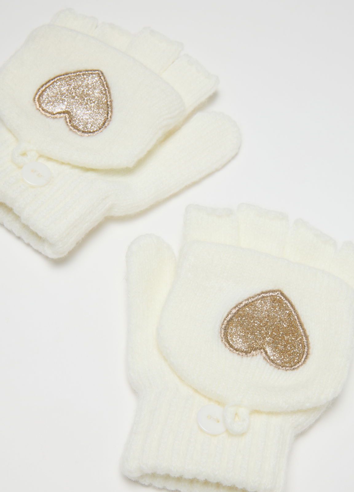 Caracteristici: Mănuși albe fără degete pentru fete între 3 și 15 ani, linia OVS KIDS, călduroase și confortabile. Design multicolor cu inimioară sclipitoare, perfect pentru orice ținută