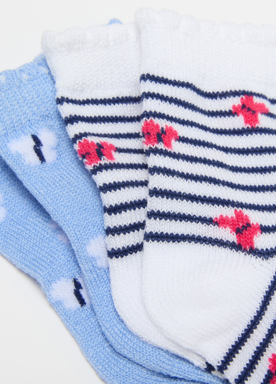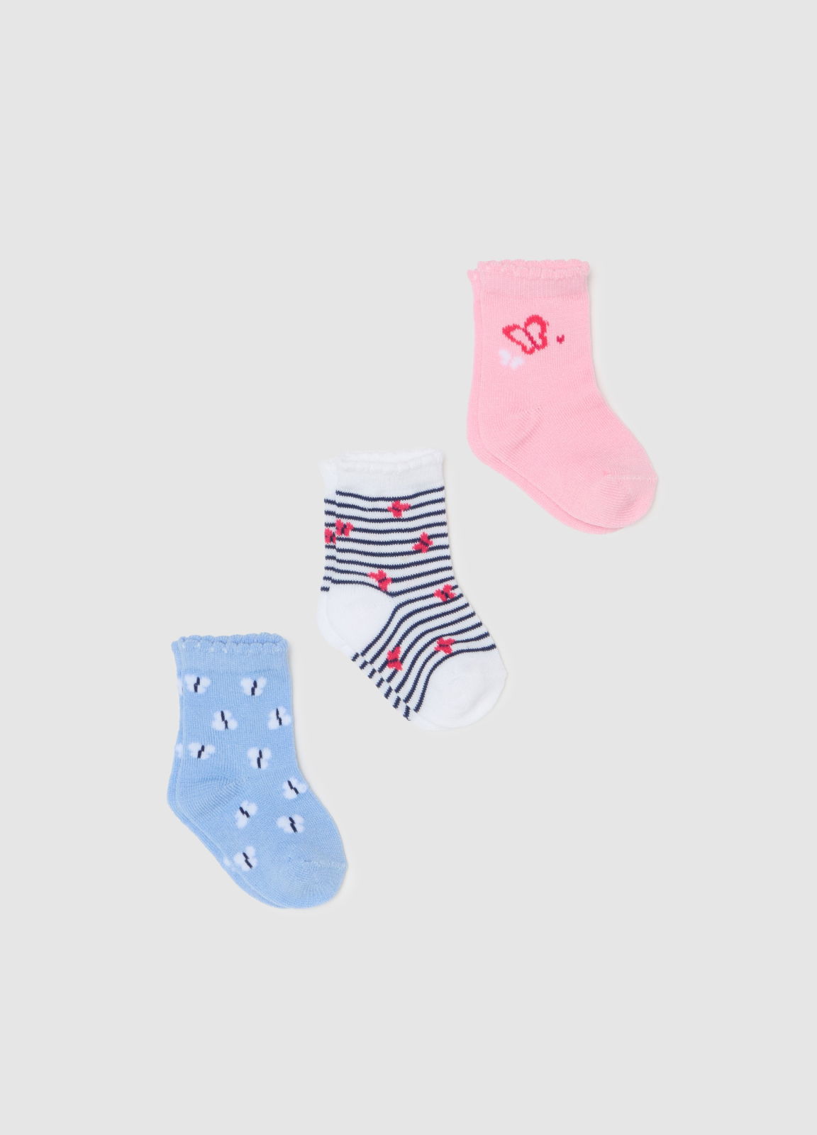 Tip Produs: Pachet de trei perechi de șosete scurte cu design de fluturi și dungi
