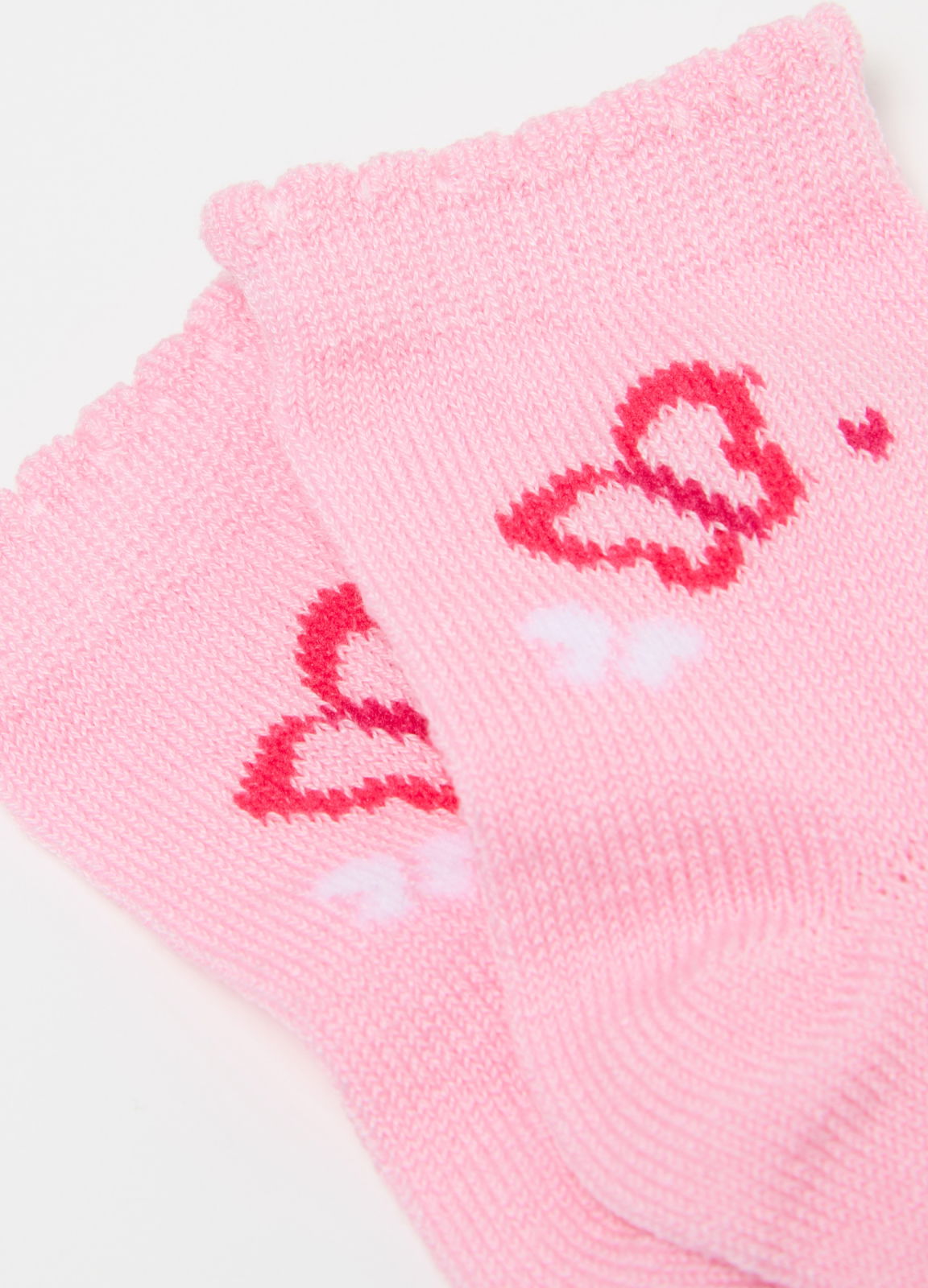 Caracteristici: Pachet de trei perechi de șosete scurte din amestec de bumbac elastic cu design de fluturi. O pereche cu model dungi. Tiv ondulat.