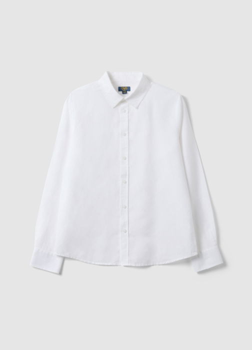 Tip Produs: Cămașă albă pentru băieți, din amestec bumbac-in, croială normală
