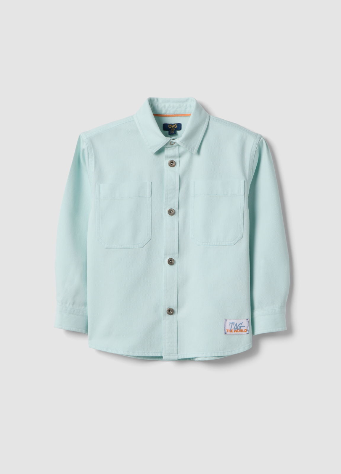 Caracteristici: Cămașă albastră băieți, amestec bumbac-lyocell, croială oversized, guler clasic, nasturi în față, pentru băieți 3-10 ani.