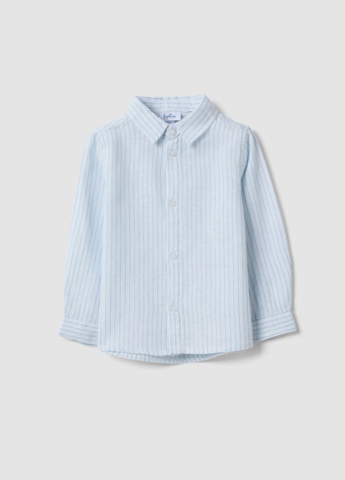 Caracteristici: Cămașa cu dungi albastre, colecția Fagottino, din amestec in și bumbac, oferă confort și moliciune pe piele. Pentru copii 9-36 luni, guler clasic și închidere cu nasturi, croială regular. Mâneci lungi și design ușor, ideal pentru vară.
