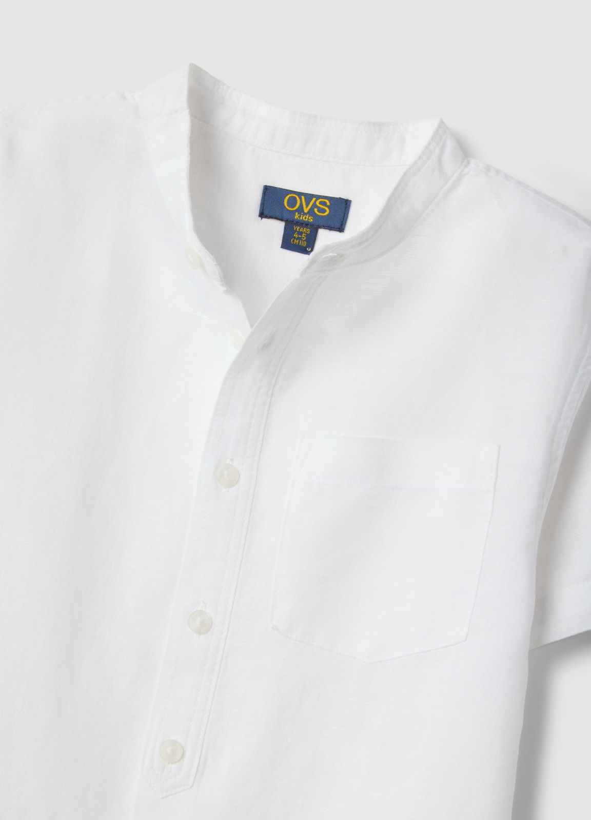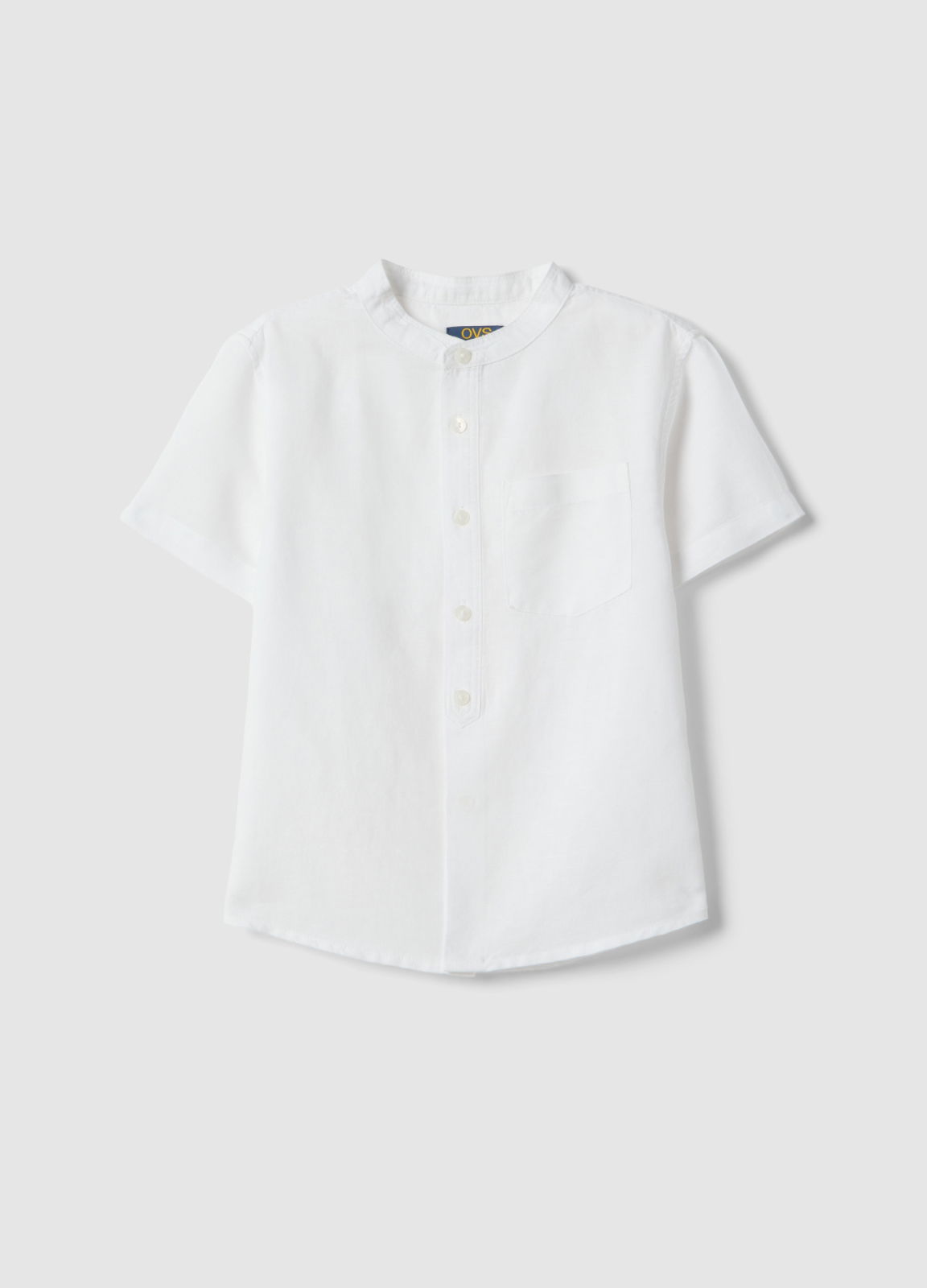 Caracteristici: Cămașă albă din amestec de in și bumbac din linia OVS KIDS, ideală pentru copii între 3 și 10 ani, perfectă pentru zilele de vară. Oferă un look proaspăt și versatil, cu mâneci scurte și guler clasic. Închidere cu nasturi și buzunar la piept combină practicitatea cu stilul. Ușoară și confortabilă, ideală pentru zilele călduroase.