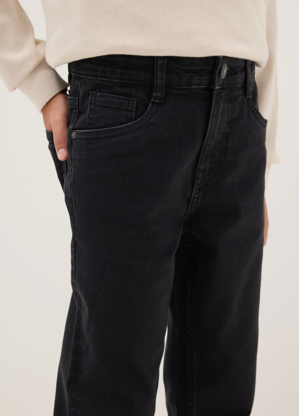 Caracteristici: Blugii negri din linia OVS KIDS sunt concepuți pentru băieți între 10 și 15 ani, care caută confort și practicitate. Realizați din amestec de bumbac elastic, oferă potrivire optimă și libertate de mișcare. Croiala standard și designul clasic cu cinci buzunare îi fac ideali pentru a face față fiecărei zile cu stil și funcționalitate.