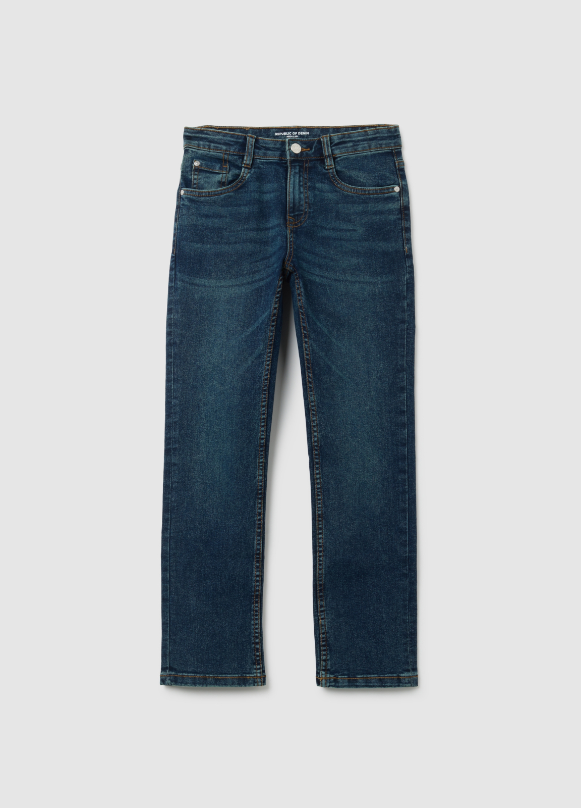 Tip Produs: Blugi albaștri din denim, croială regular fit, pentru băieți