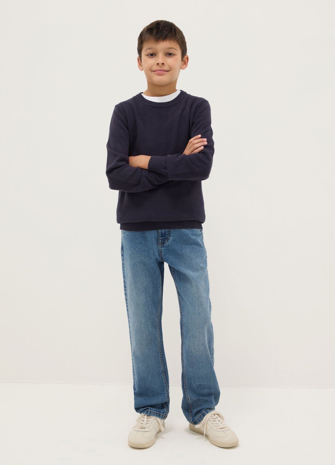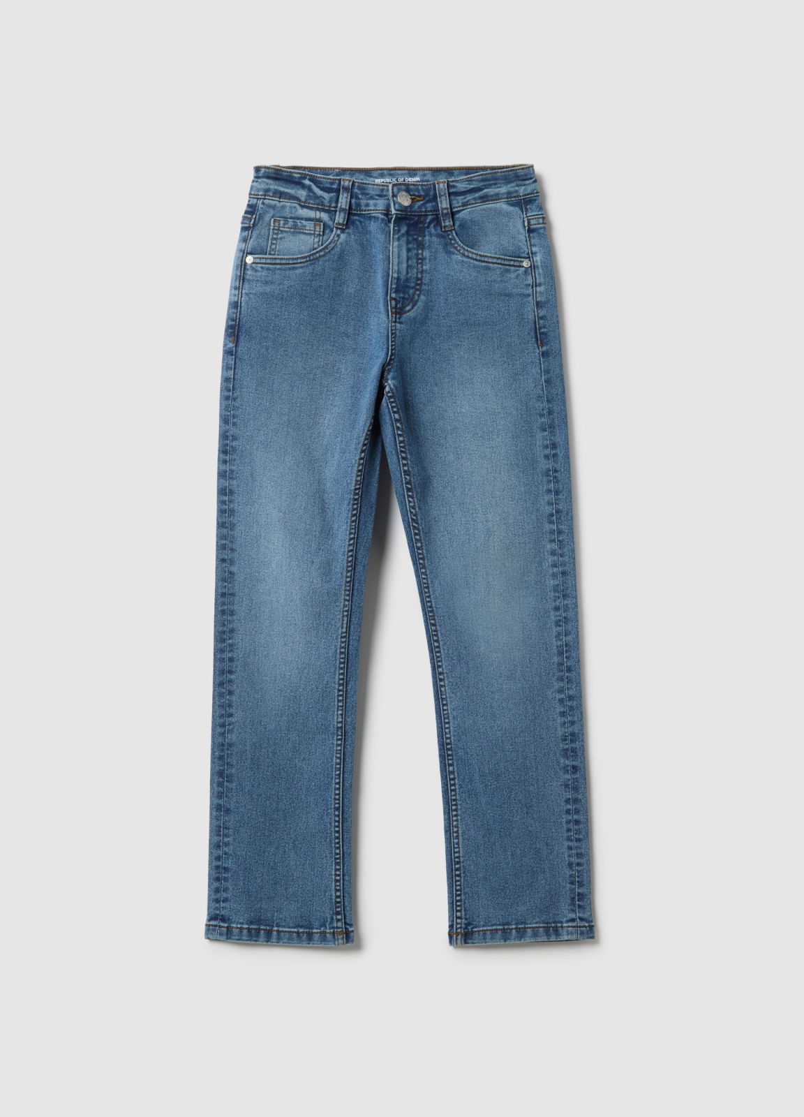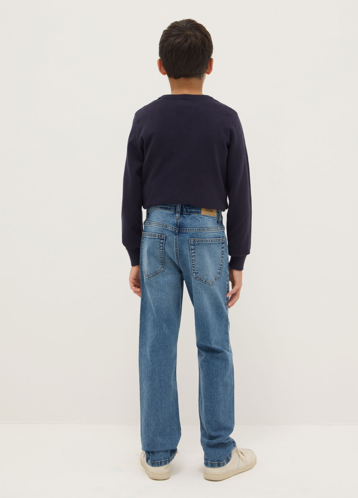Caracteristici: Blugii albaștri din denim elastic din gama OVS KIDS sunt perfecți pentru copii și adolescenți între 10 și 15 ani. Confecționați din bumbac elastic, asigură o potrivire confortabilă cu croială regular. Talia elastică oferă adaptabilitate și confort pentru orice ocazie.