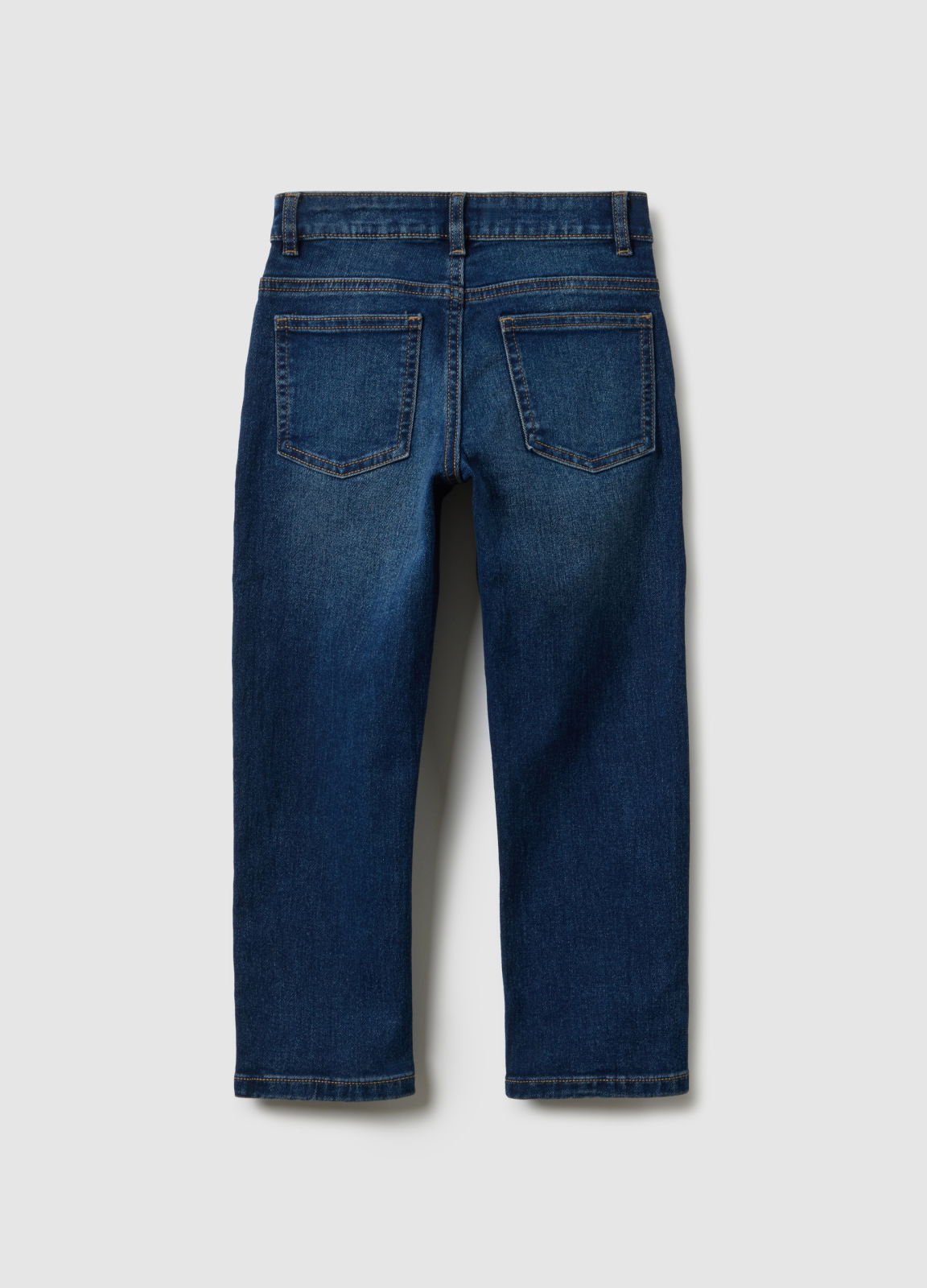 Caracteristici: Blugii albaștri din linia OVS KIDS sunt confecționați din denim elastic, concepuți pentru copii între 3 și 10 ani, asigurând confort și libertate de mișcare. Croiala cu picior drept este completată de detalii clasice, precum buzunare frontale și posterioare.