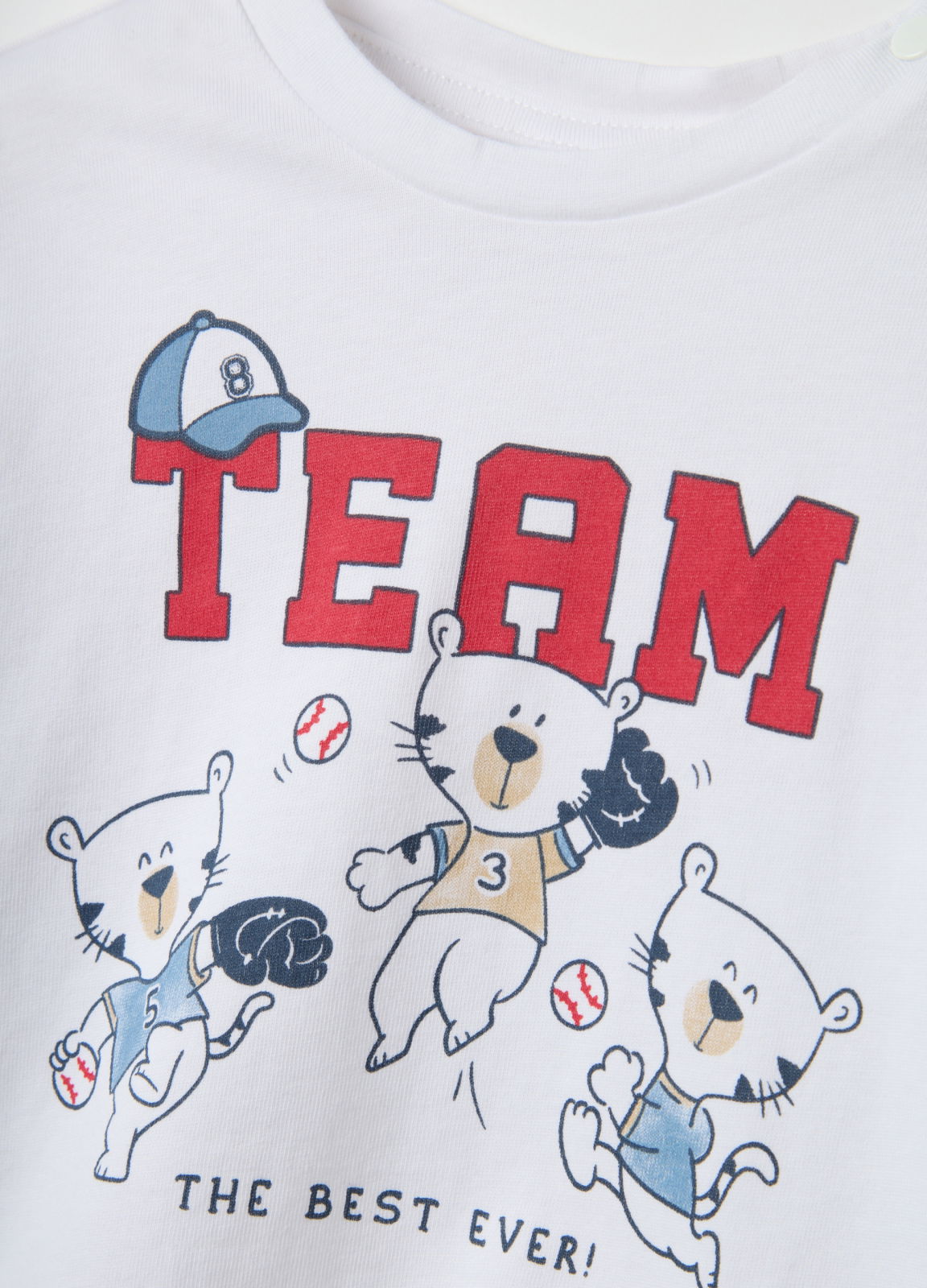 Tip Produs: Tricou alb pentru copii mici din bumbac pur, croială regular, cu tigru