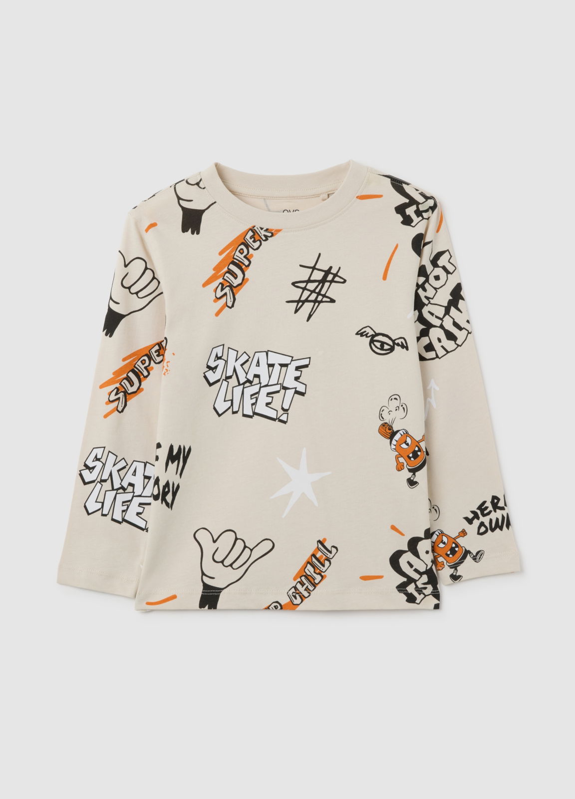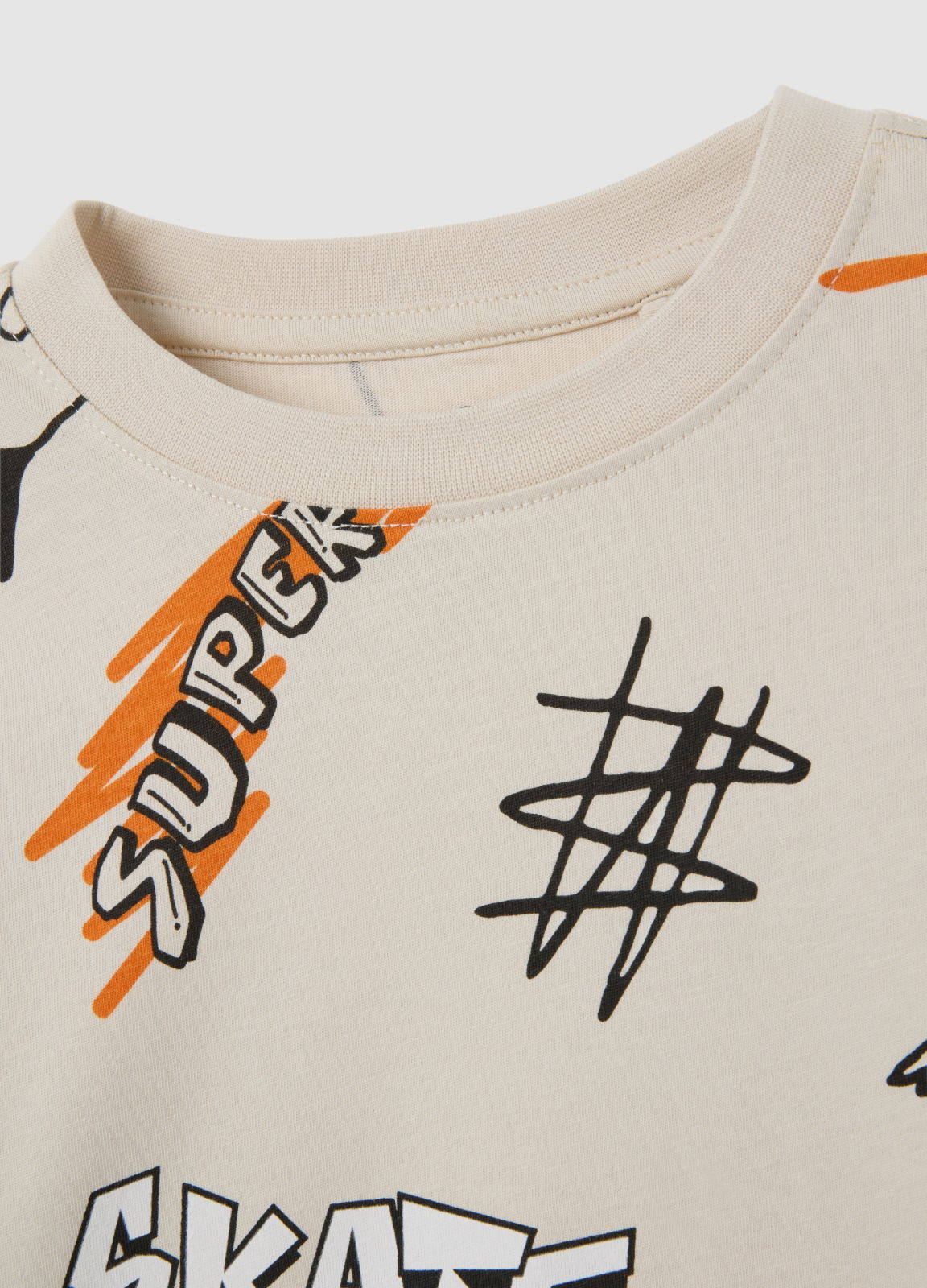Caracteristici: Tricoul bej din linia OVS Kids pentru copii cu vârste între 3 și 10 ani este realizat din bumbac pur. Cu un guler rotund și mâneci lungi, acest tricou prezintă un imprimeu vesel cu skateboard. Designul său unic și original îl face un articol versatil și confortabil pentru orice ocazie.