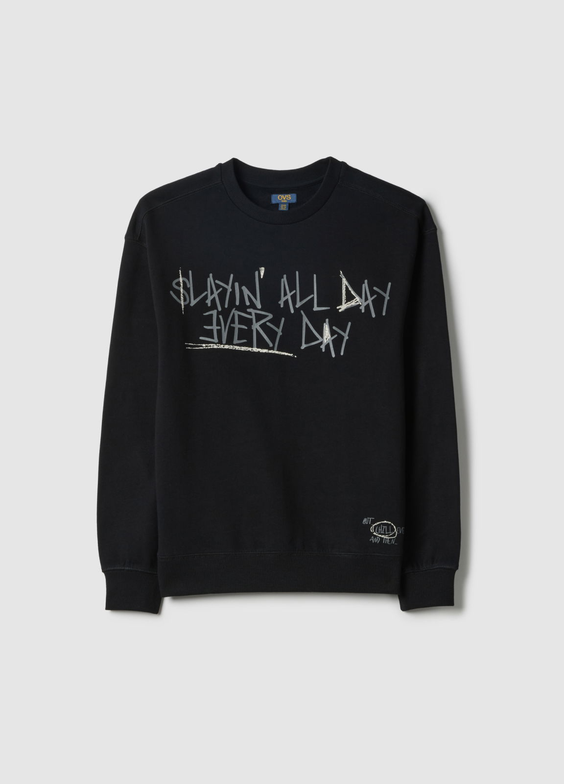 Caracteristici: Bluza neagră din linia OVS KIDS pentru băieți cu vârste între 10 și 15 ani este realizată din bumbac 100% și oferă confort optim datorită croielii oversize. Perfectă pentru sezonul de primăvară, include mâneci lungi și guler rotund, fiind un articol versatil pentru orice ocazie, mai ales datorită literelor imprimate frontal.