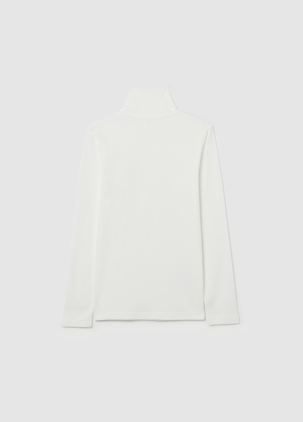 Caracteristici: Puloverul alb cu guler înalt din bumbac 100% din linia OVS Kids este conceput pentru băieți între zece și cincisprezece ani. Prevăzut cu mâneci lungi, oferă căldură și confort, iar gulerul înalt protejează de frig. Croiala regular îl face potrivit pentru orice ocazie, fie la școală, fie pentru activități în aer liber.