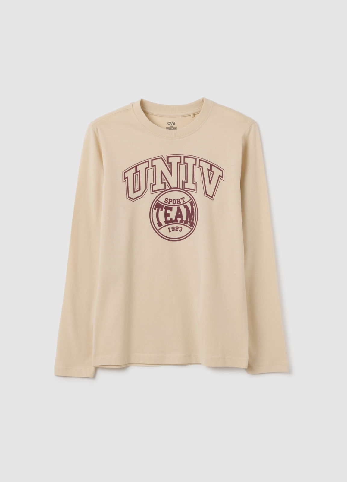 Caracteristici: Acest tricou bej cu mânecă lungă din bumbac pur din linia OVS Kids este destinat băieților cu vârste între 10 și 15 ani, ideal pentru un look casual și confortabil în zilele de toamnă. Imprimeul colegial de pe piept adaugă o notă distinctivă, fiind perfect pentru cei care caută un stil relaxat. Bumbacul oferă moliciune și respirabilitate, garantând confort maxim la purtare zilnică.