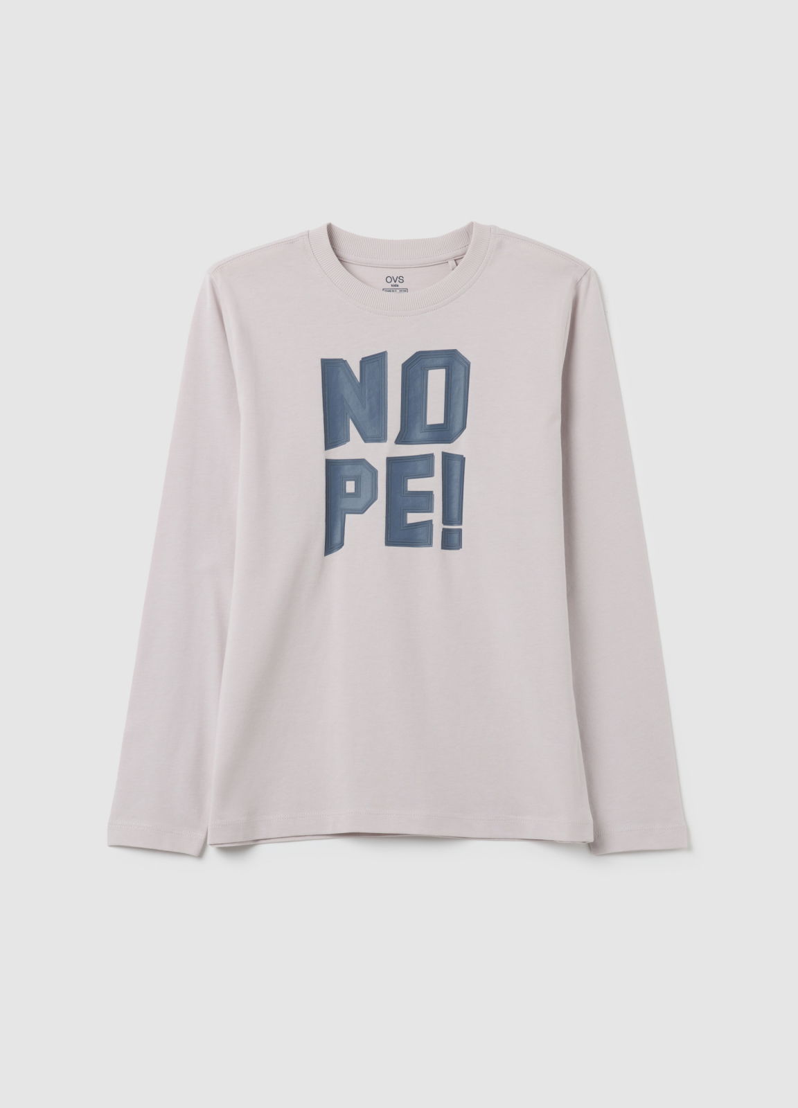 Caracteristici: Acest tricou alb lung pentru băieți din linia OVS Kids este realizat din bumbac pur alb și are un imprimeu îndrăzneț cu inscripție. Cu guler rotund și mâneci lungi, este perfect pentru băieții cu vârsta între 10 și 15 ani care caută o piesă casual și confortabilă. Croiala regular fit îl face ideal pentru un look relaxat, ușor de asortat cu diverse ținute, de la sportive la informale.