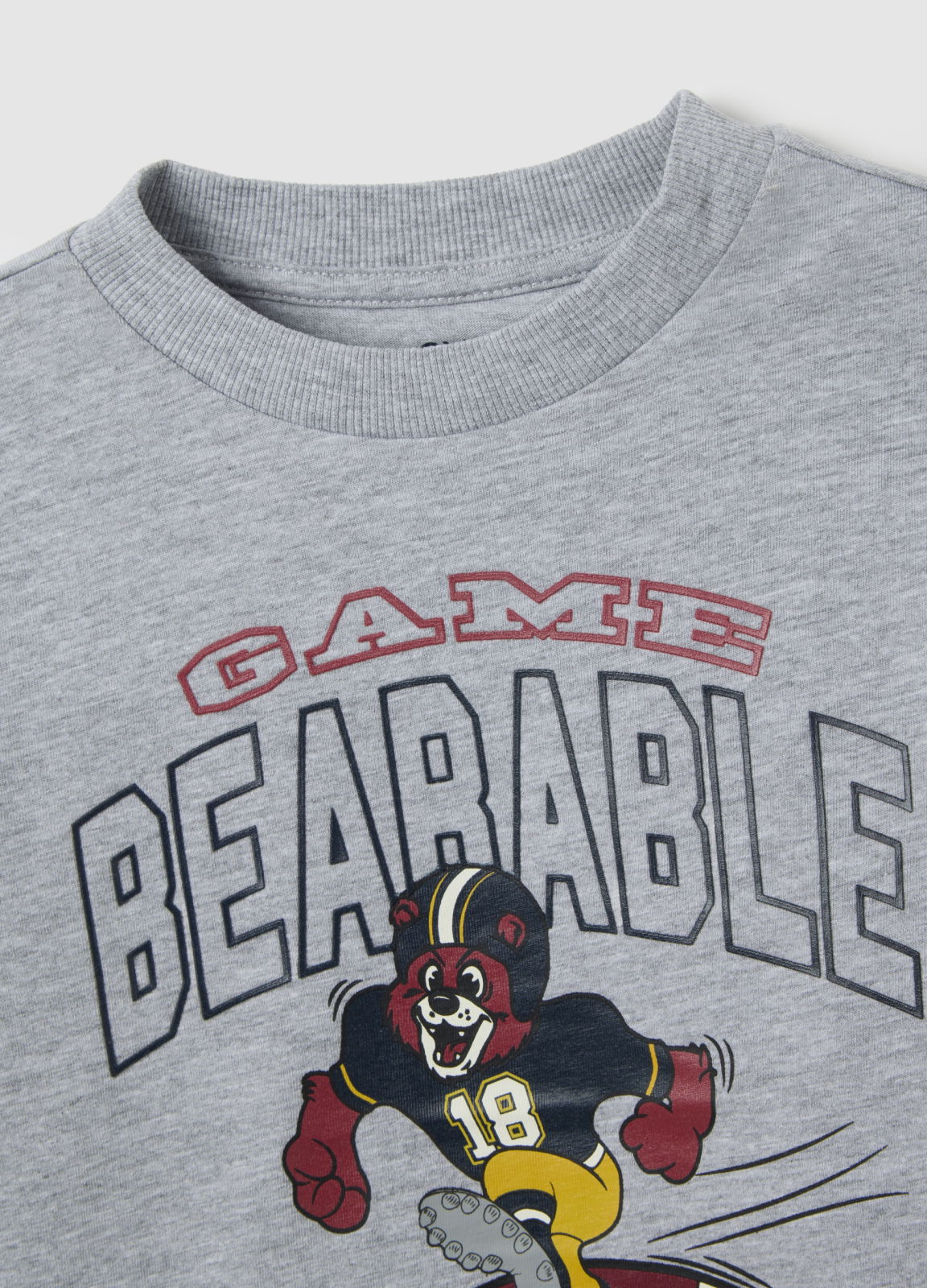 Caracteristici: Cămașa gri din amestec de bumbac pentru copii între 3 și 10 ani din linia OVS KIDS are imprimeul „GAME BEARABLE”, adăugând un plus de veselie aspectului. Croiala regular și gulerul rotund asigură libertate de mișcare și practicitate în timpul jocului.