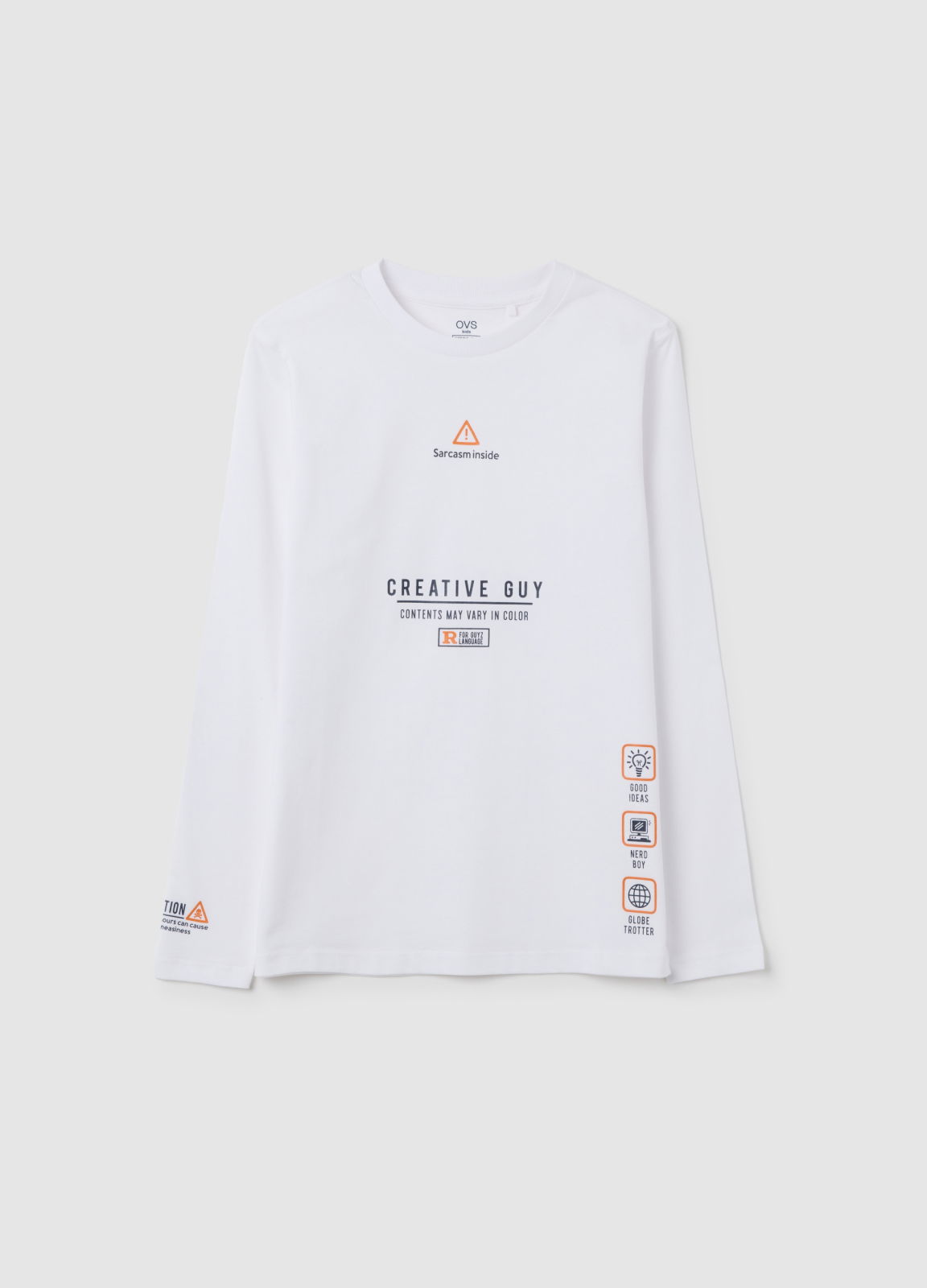 Caracteristici: Acest tricou alb cu mâneci lungi din linia OVS Kids este destinat băieților între 10 și 15 ani. Confecționat din bumbac pur, are un imprimeu creativ pe față și pe mânecă, perfect pentru un look casual și versatil. Gulerul rotund clasic asigură o potrivire confortabilă, ideală pentru orice ocazie informală. Tricoul se adaptează ușor la diverse stiluri, fiind o piesă practică și funcțională pentru purtarea zilnică.