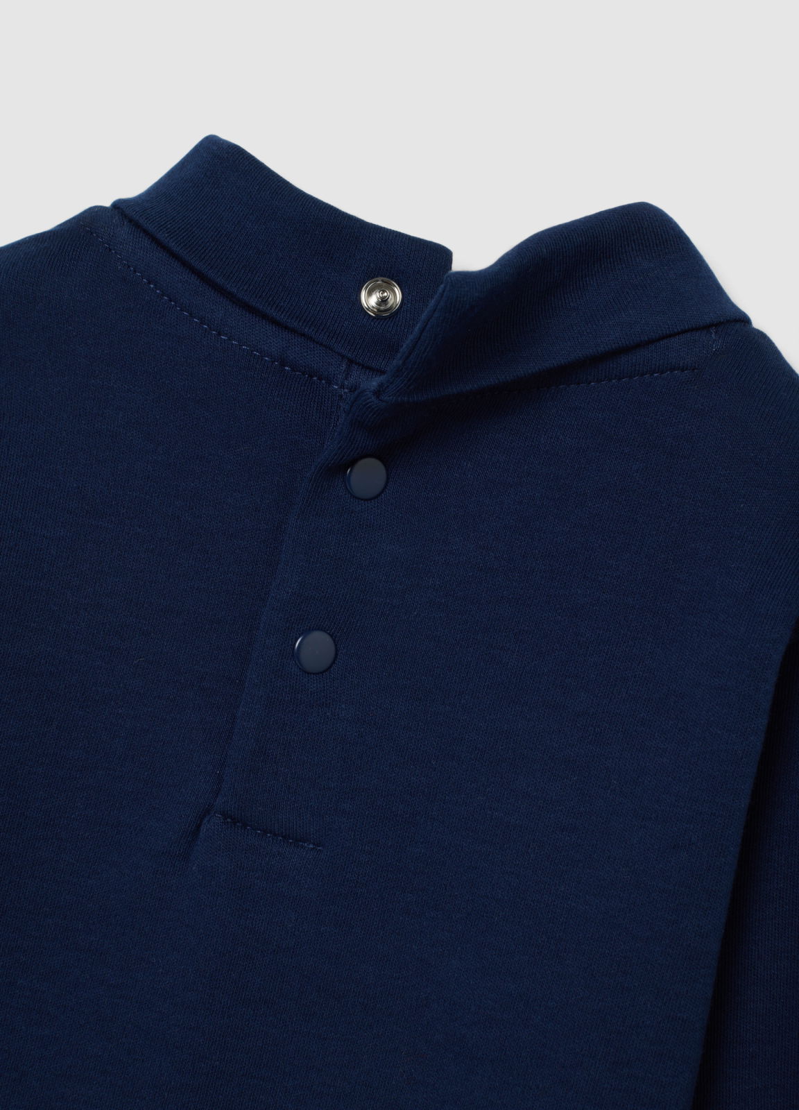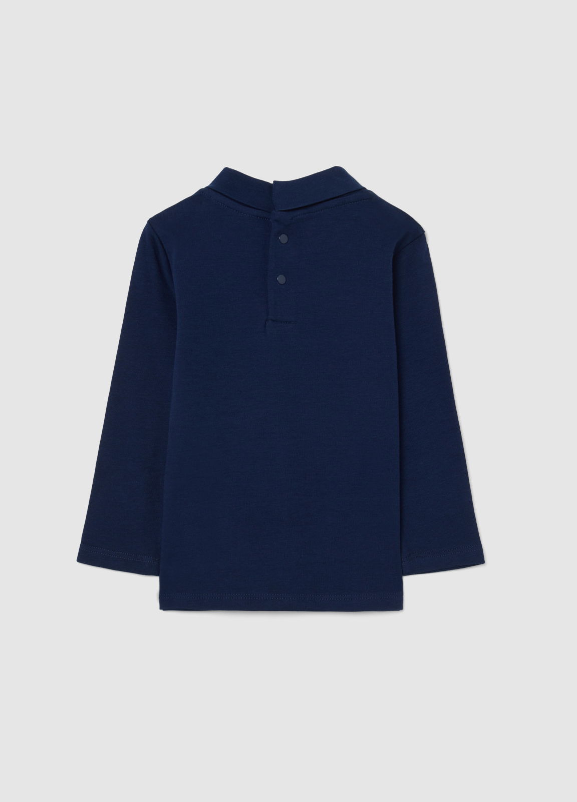 Tip Produs: Pulover albastru pentru bebeluși cu guler tip mock, din bumbac 100%, croială normală, cu imprimeu