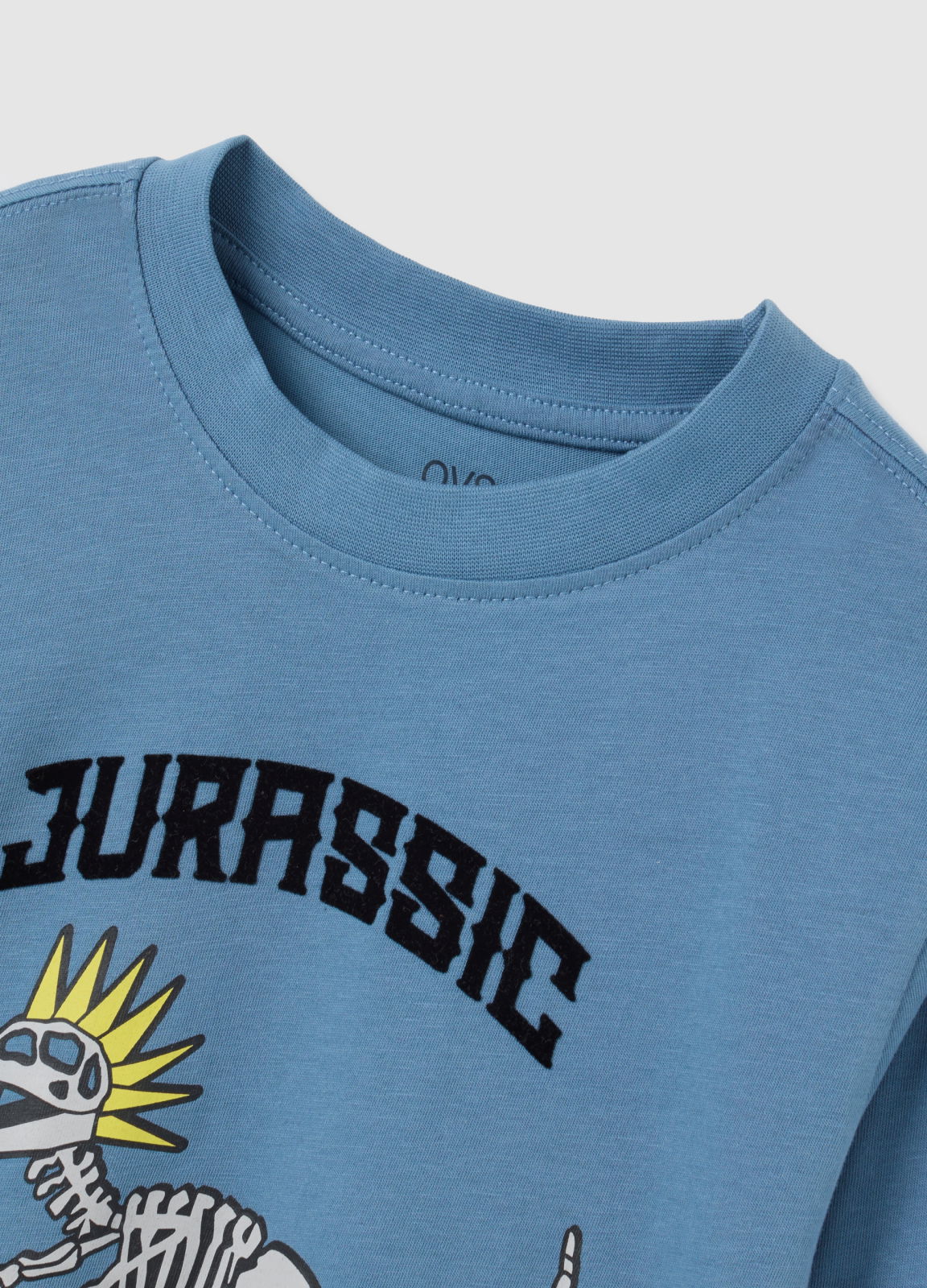 Caracteristici: Tricoul albastru din bumbac pur pentru copii, potrivit pentru vârste între 3 și 10 ani din linia OVS Kids, oferă o croială normală cu guler rotund, perfectă pentru mișcare zilnică. Designul vesel include un imprimeu cu dinozaur rock, adăugând un plus jucăuș garderobei. Ideal pentru a însoți fiecare aventură în sezonul de toamnă și iarnă.