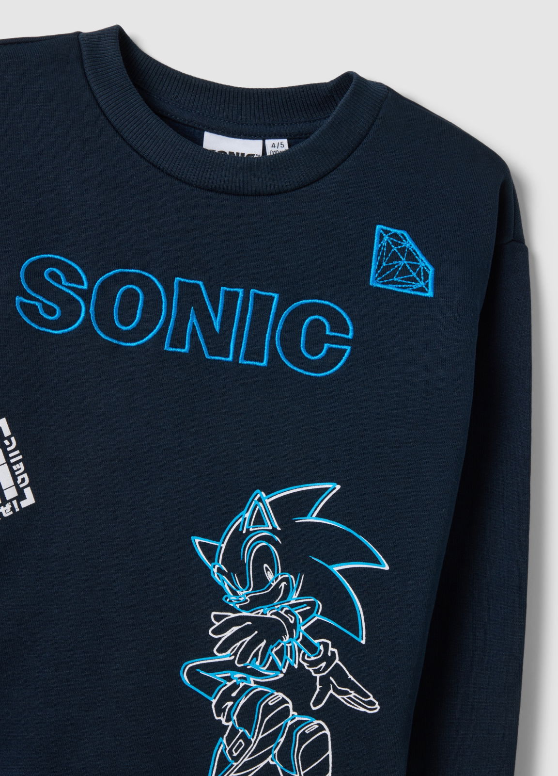 Tip Produs: Bluză supradimensionată albastră din amestec de bumbac, cu imprimeu Sonic pentru băieți