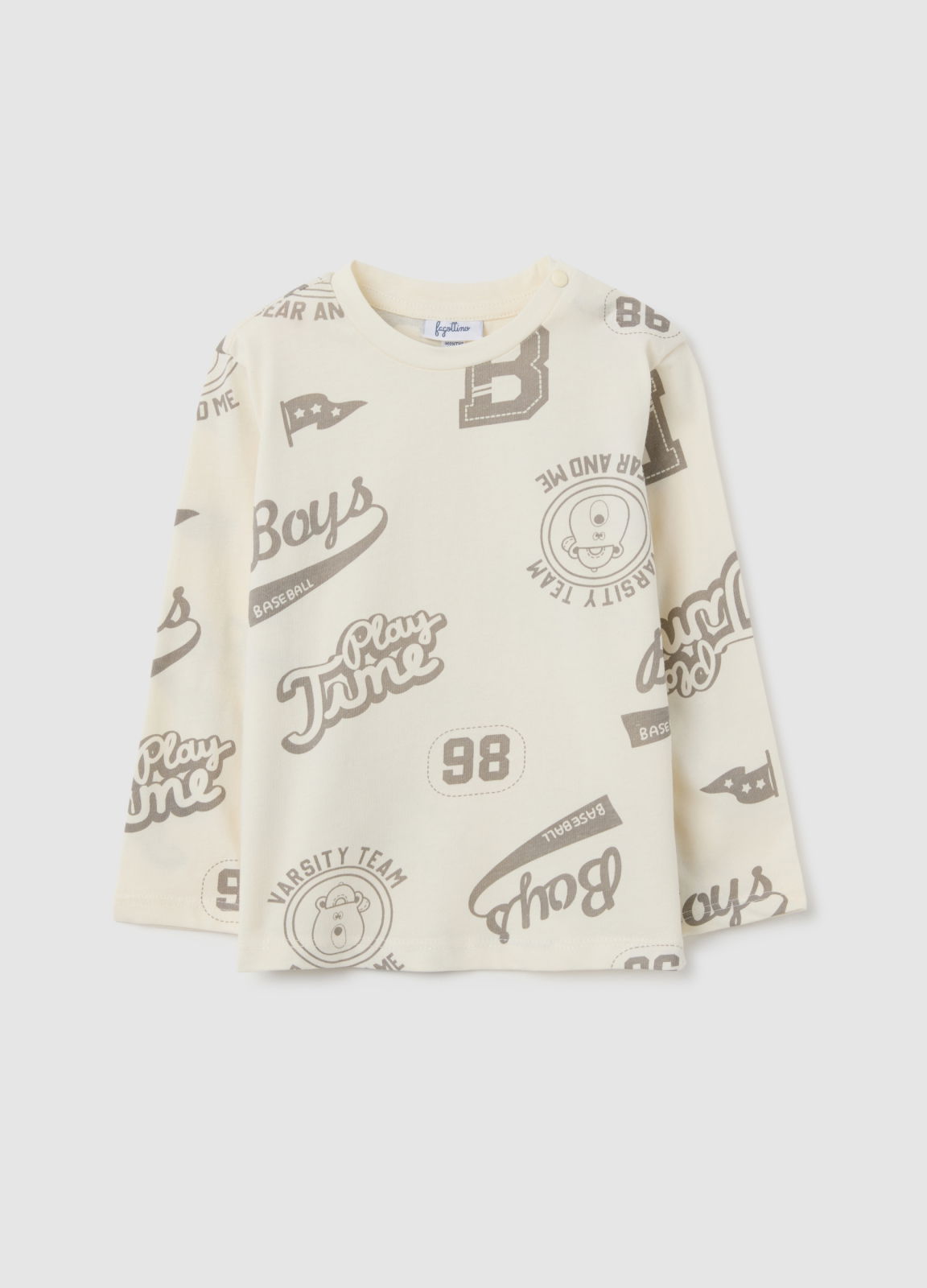 Caracteristici: Tricoul bej cu mânecă lungă pentru copii din gama Fagottino, confecționat din bumbac pur, este împodobit cu imprimeul Varsity. Este un articol ideal pentru copii cu vârsta între 0 și 3 ani, asigurând confort și libertate de mișcare. Perfect pentru activitățile zilnice, fitul este regular, asigurând practicitate și confort.