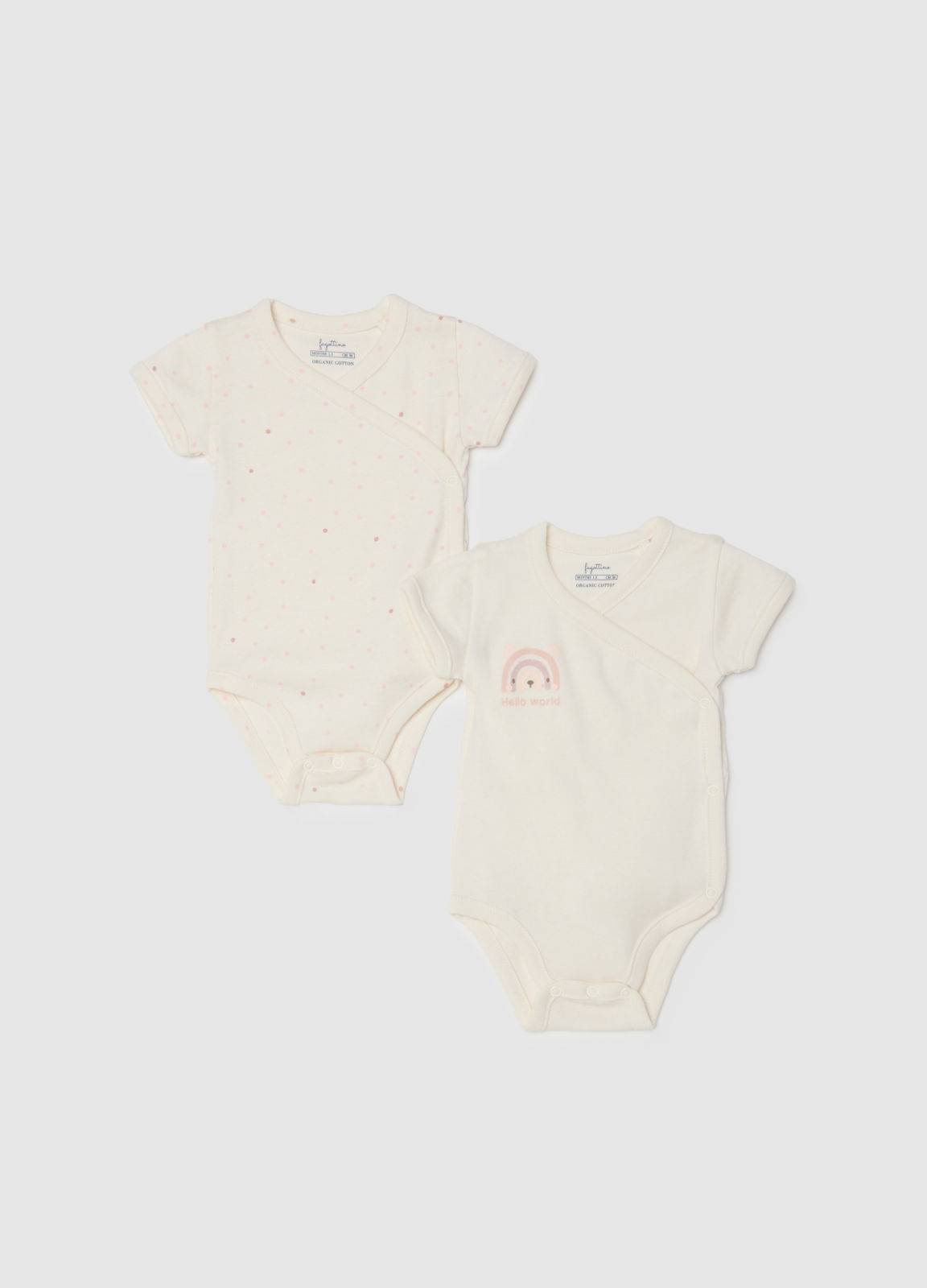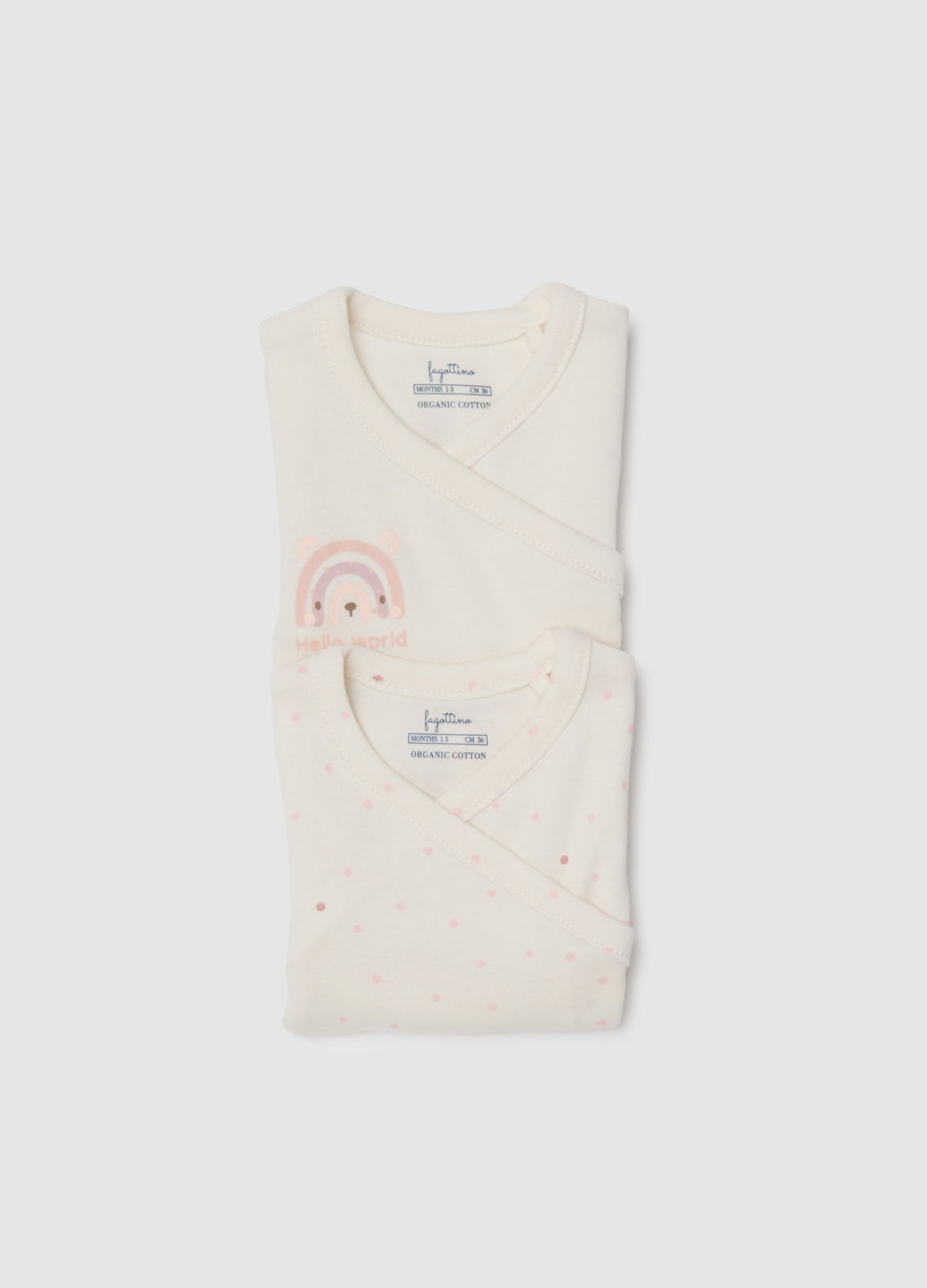 Tip Produs: Set de două body-uri albe pentru nou-născuți, din bumbac 100%