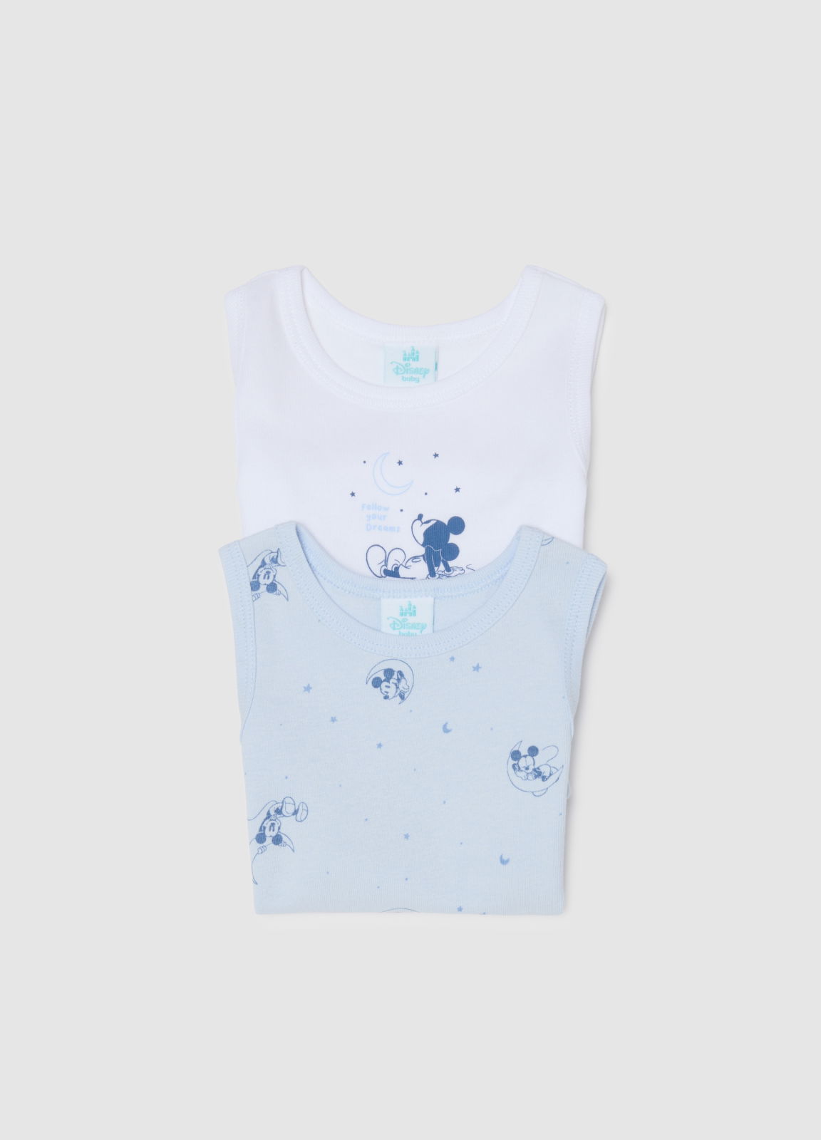Tip Produs: Multipachet de două body-uri multicolore din bumbac 100% pentru bebeluși, cu imprimeu Mickey Mouse